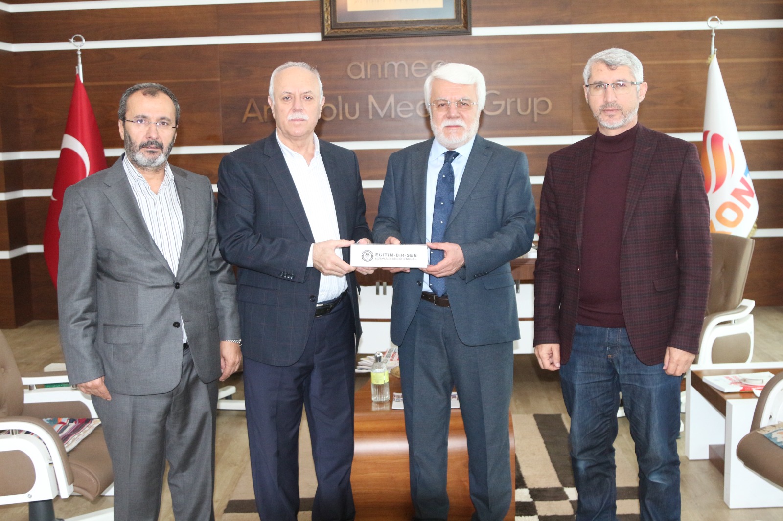 Memur-Sen Konya İl Temsilcisi ve Eğitim Bir-Sen Konya Şube Başkanı Nazif Karlıer, Başkan Yardımcıları Aziz Anik ve Vedat Ay ile birlikte 10 Ocak Çalışan Gazeteciler Günü nedeniyle Anadolu Medya Grup (ANMEG)’u ziyaret etti.