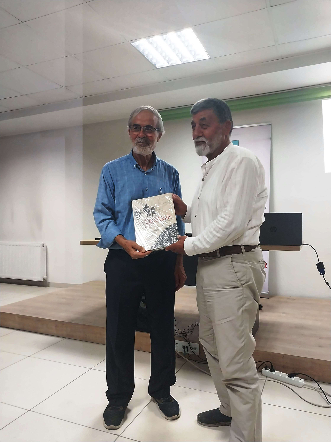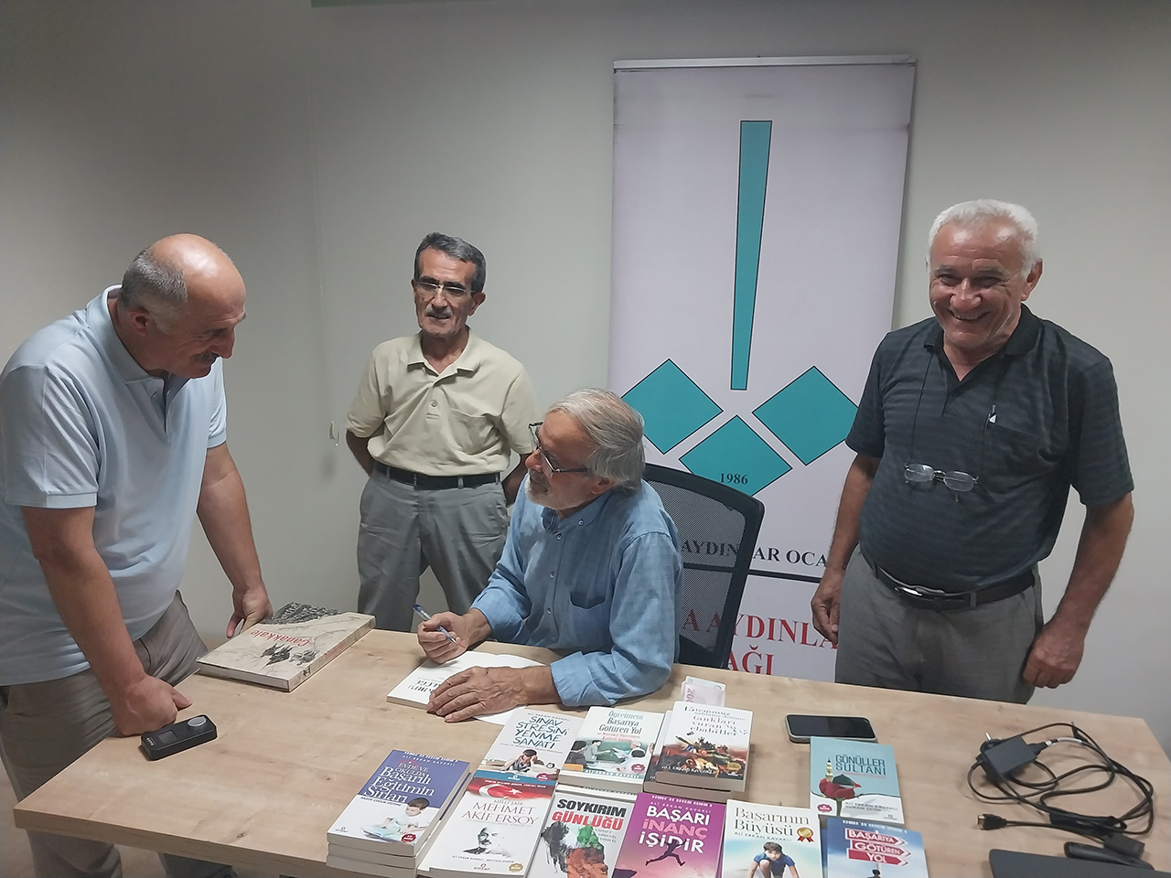 Programdan sonra katılımcılara kitaplarını imzalayan Ali Erkan Kavaklı’ya Konya Aydınlara Ocağı Başkanı Dr. Mustafa Güçlü günün hatırası olarak kitap takdim etti. (Yunus Köroğlu)