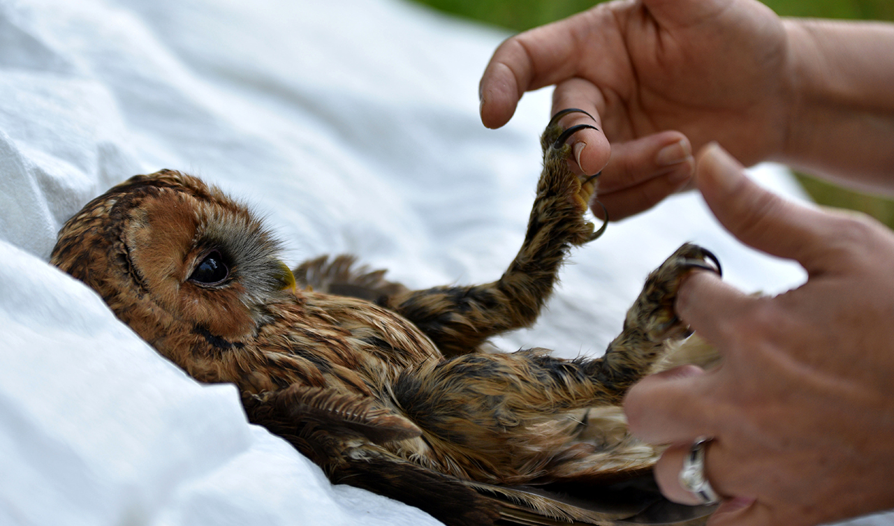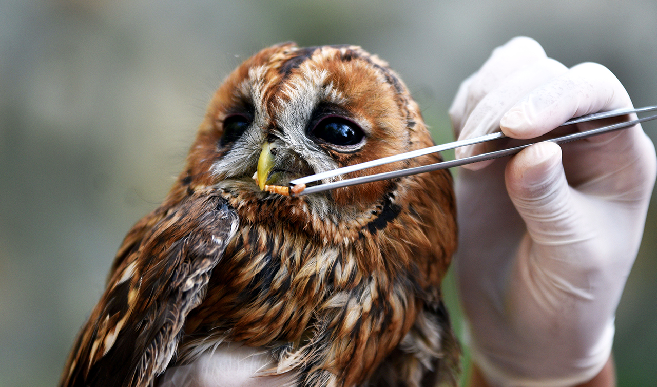 Antalya'da doğada konduğu telde elektrik çarpması sonucu yaralanan alaca baykuşun his kaybı oluşan bacağı, özel egzersiz ve masajla tedavi ediliyor. Antalya Doğal Yaşam Parkı'nda bakıma alınan baykuşa, veteriner tarafından fizik tedavi uygulanıp, canlı kurtla besleniyor.