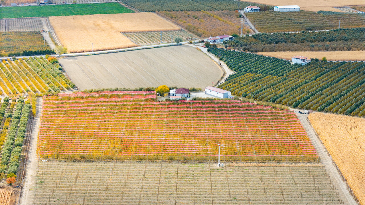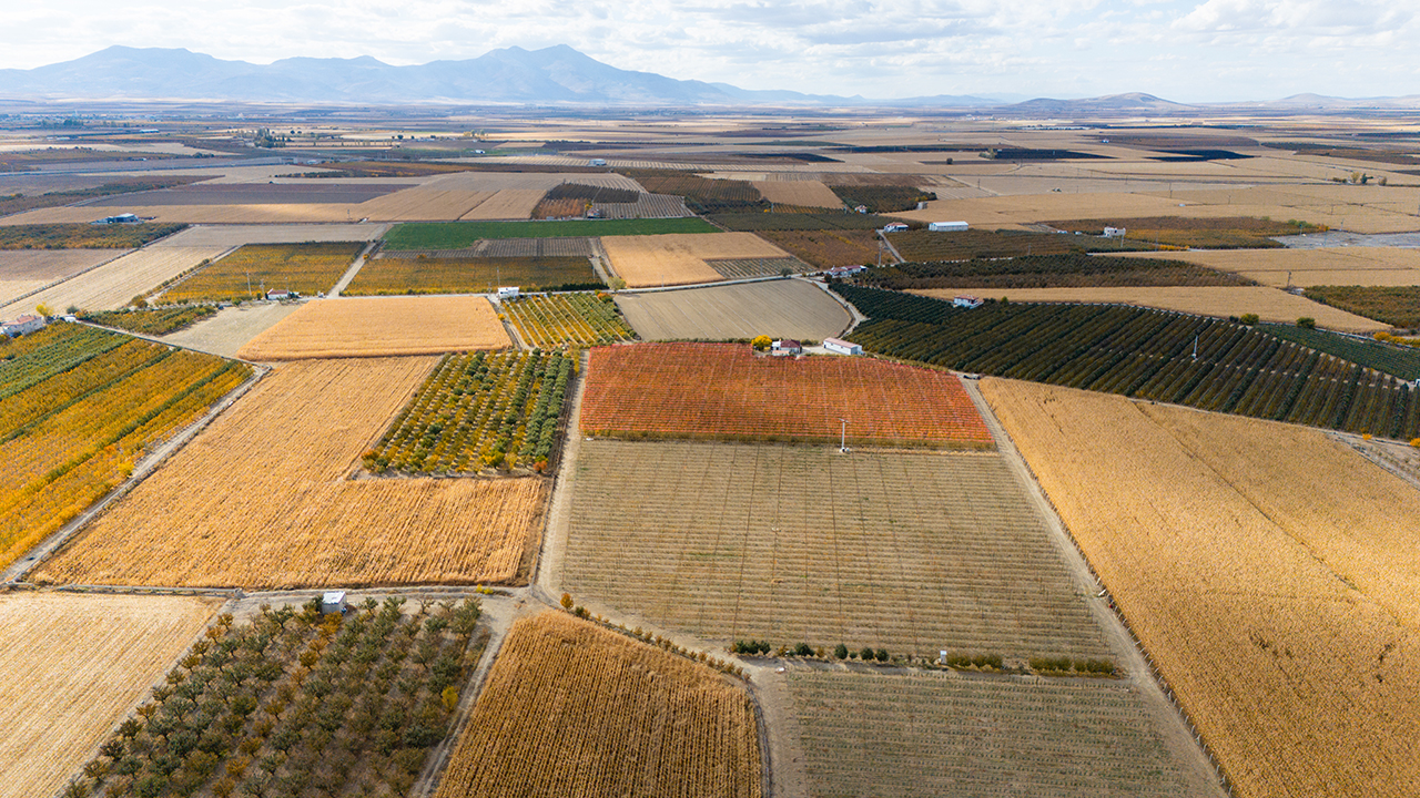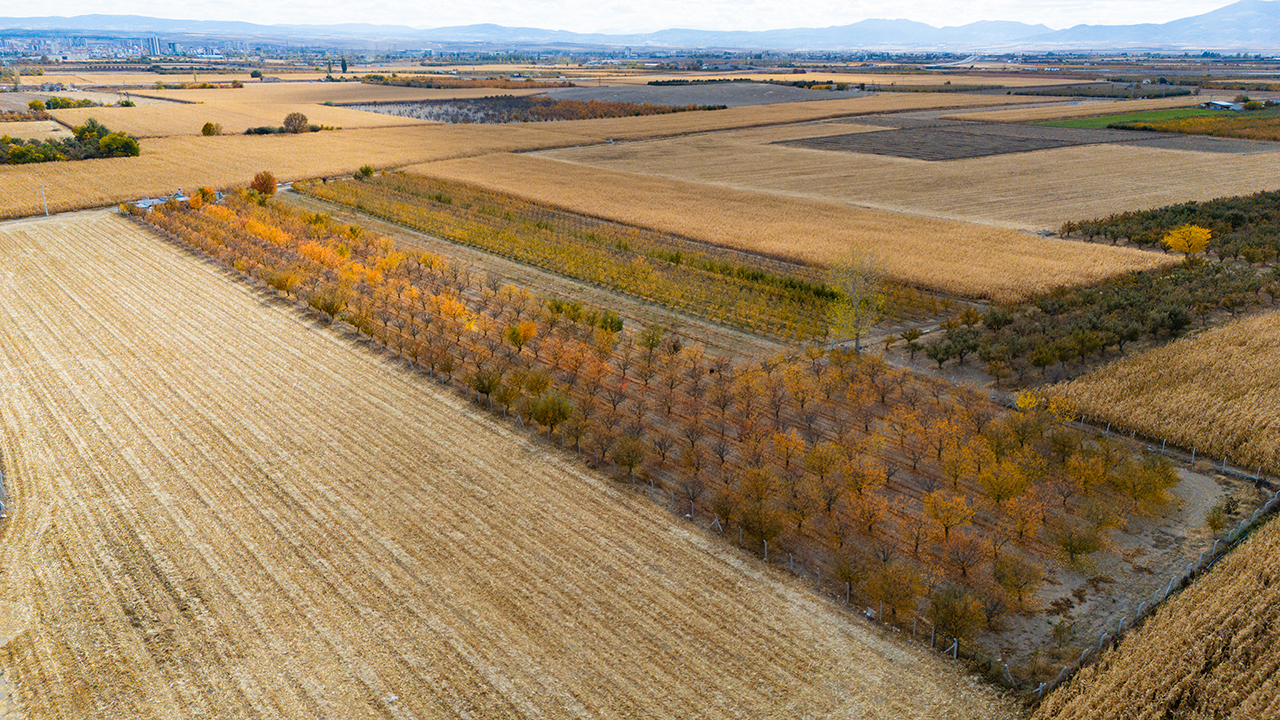 Elma üretiminde ön plana çıkan kentte bulunan elma bahçeleri, sonbaharın gelmesiyle sarı, turuncu ve kızıl tonlara büründü. Dronla görüntülenen bahçeler, doğal bir stüdyoyu andırıyor.