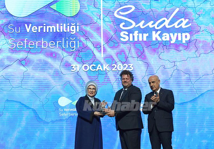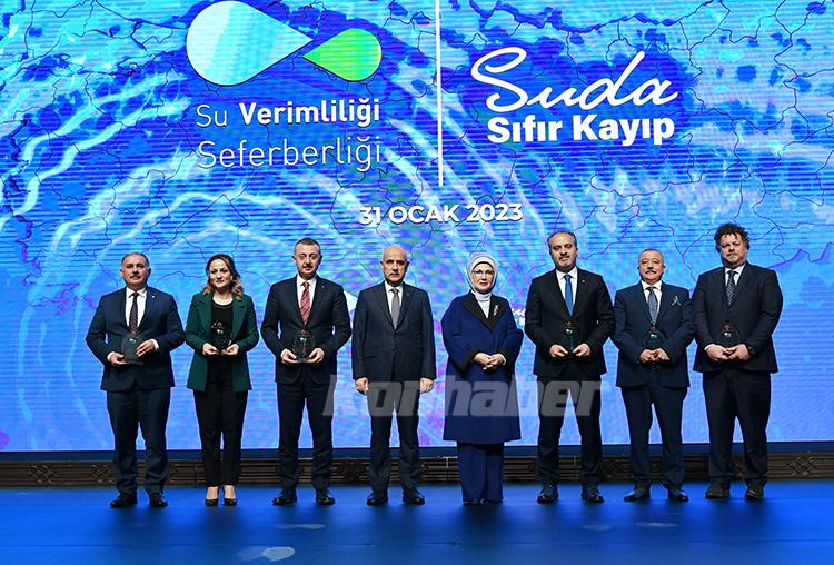 Emine Erdoğan, su verimliliğinde iyi uygulama örneklerinde bulunan kişilere teşekkür plaketlerini sundu.