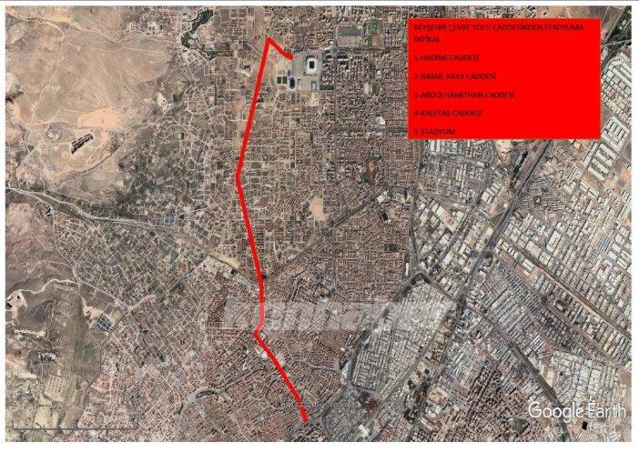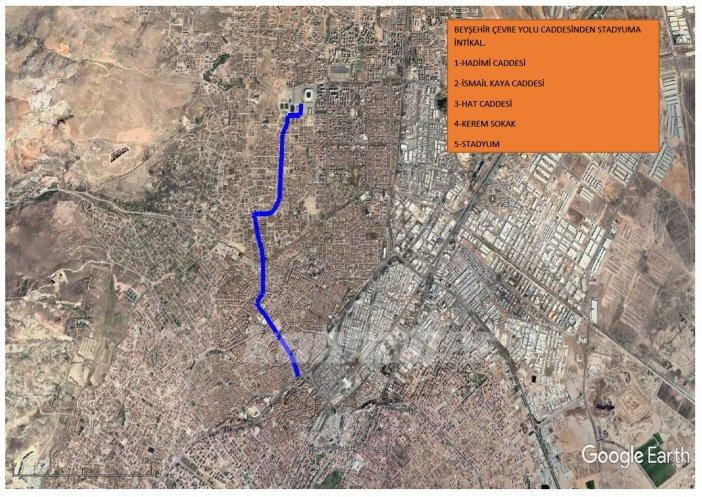 1- Beyşehir Çevre Yolu Caddesinden Stadyuma 1. Güzergah