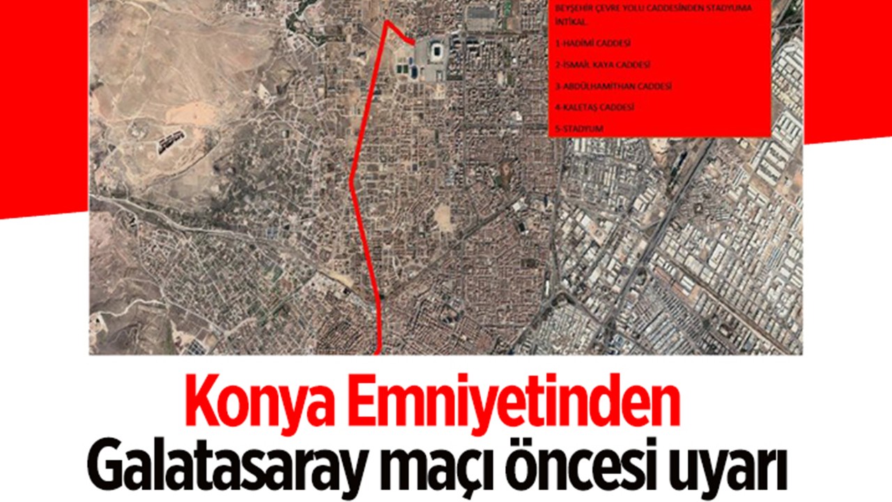 Lider Galatasaray bugün Konyaspor’a konuk olacak. Konya Emniyet Müdürlüğü, maç öncesi mağduriyet yaşanmaması için taraftarlara uyarılarda bulundu.