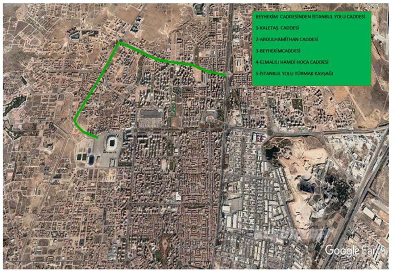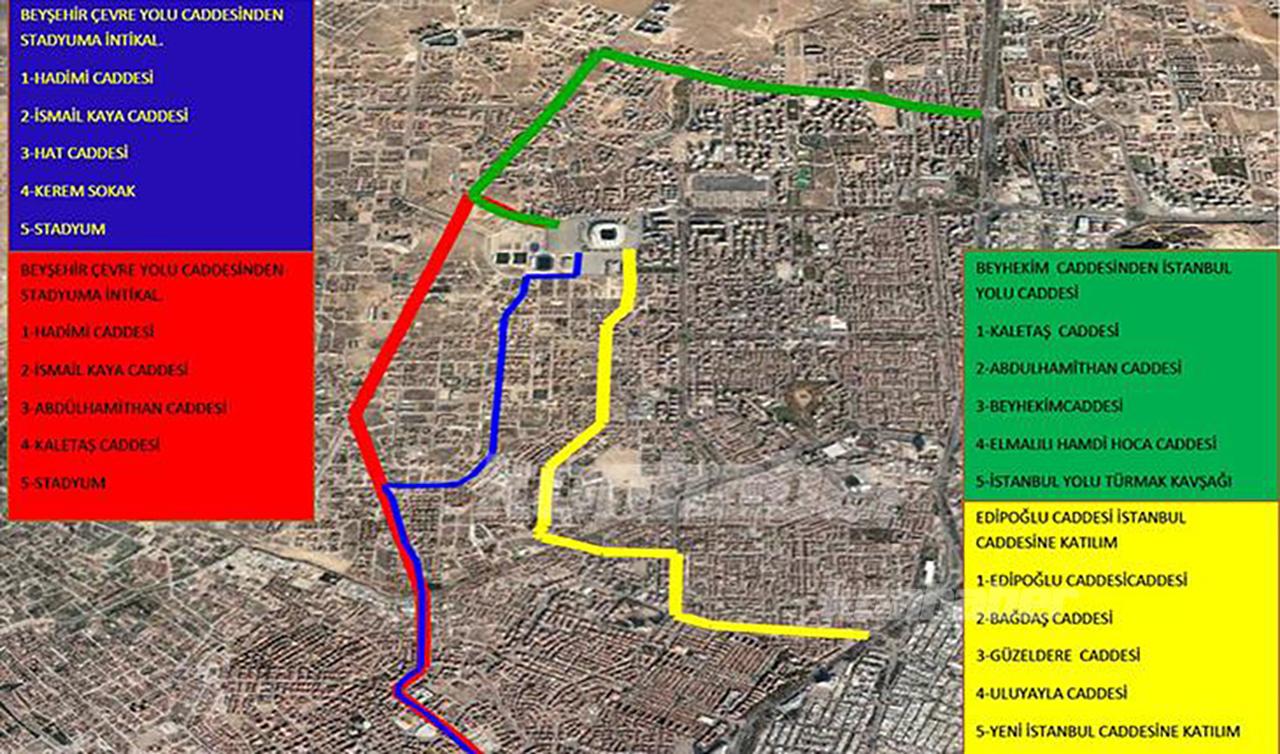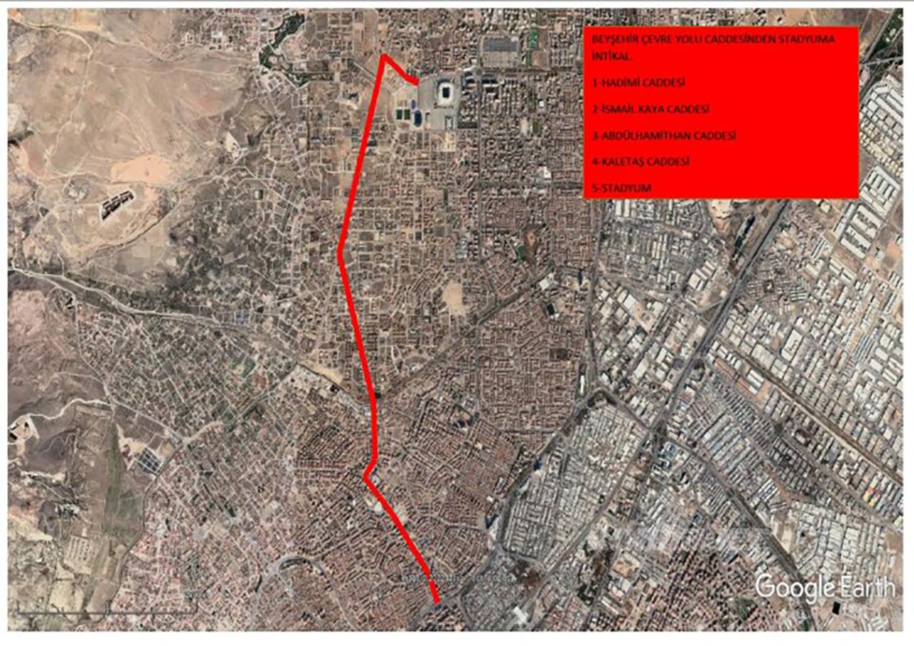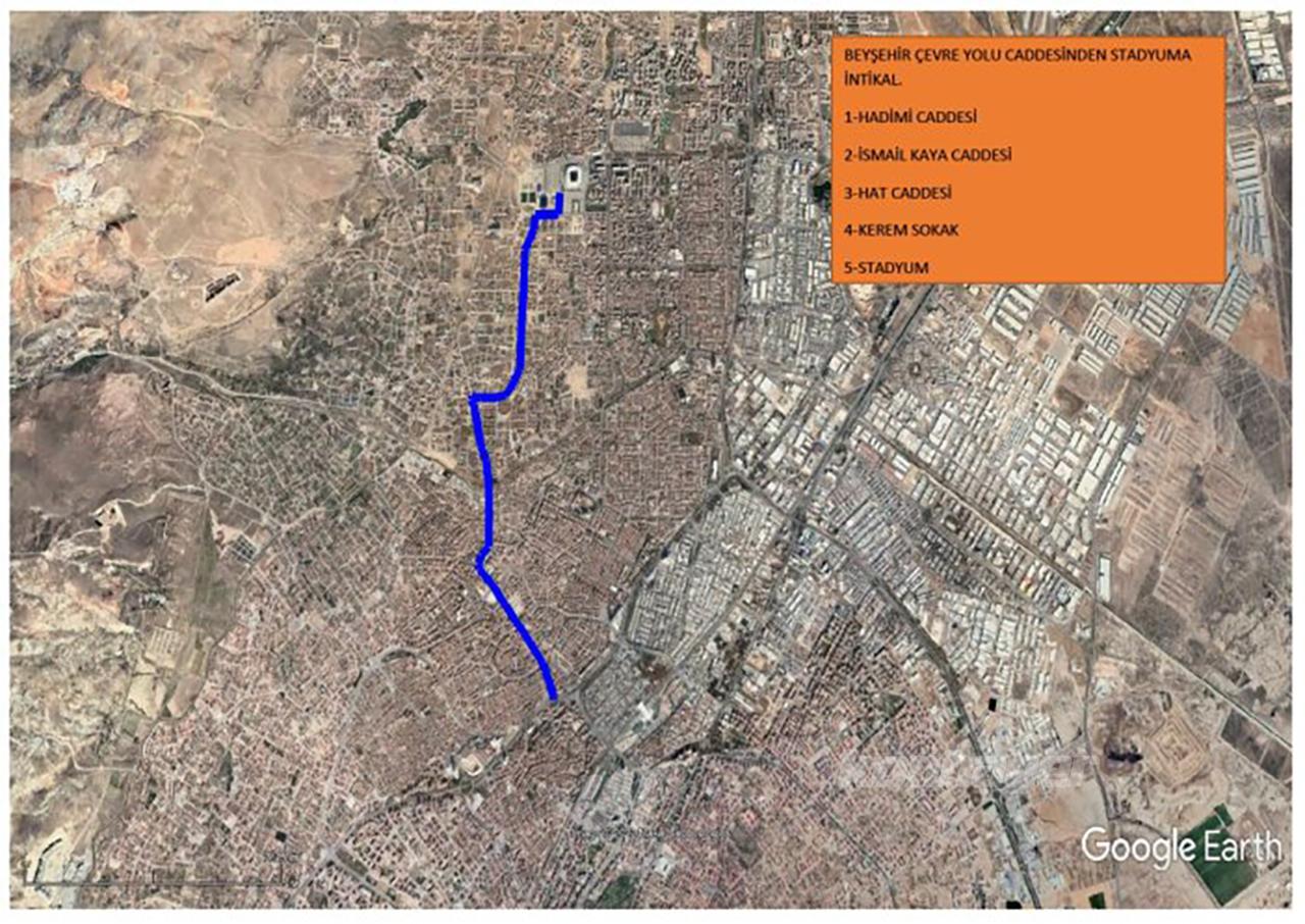 -Beyşehir Çevre Yolu Caddesinden Stadyuma 1. Güzergah