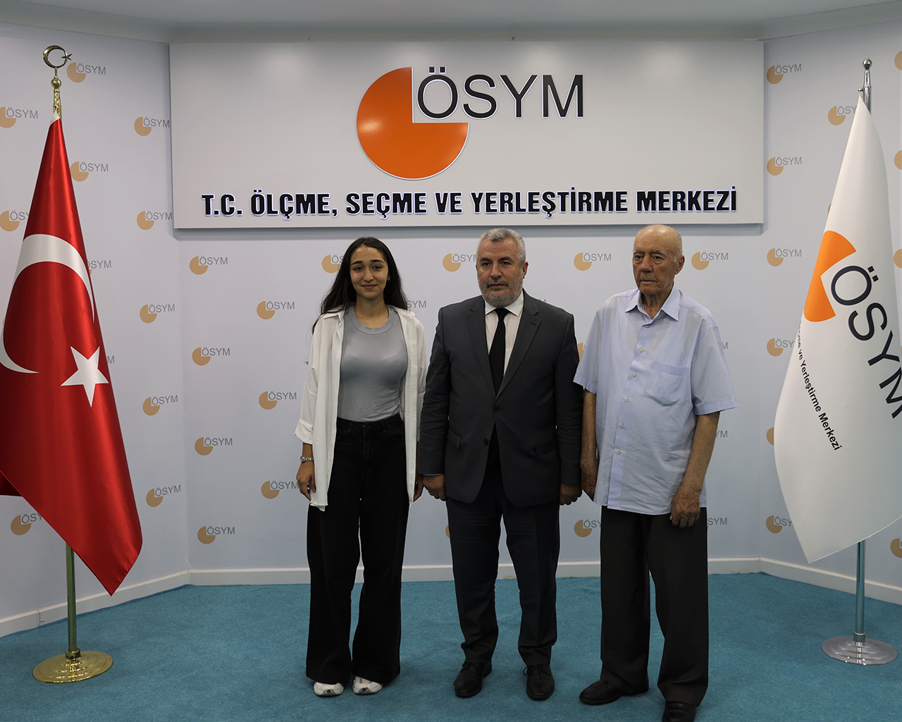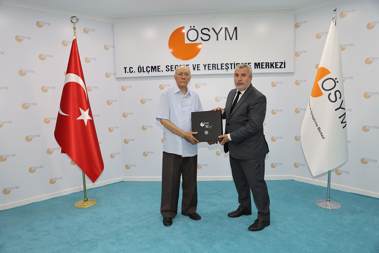 Ölçme, Seçme ve Yerleştirme Merkezi (ÖSYM) Başkanı Bayram Ali Ersoy, 2024 Yükseköğretim Kurumları Sınavı'na (YKS) giren en yaşlı aday Mustafa Taşbaş (85) ve en genç aday Elif Koçak (15) ile bir araya geldi.