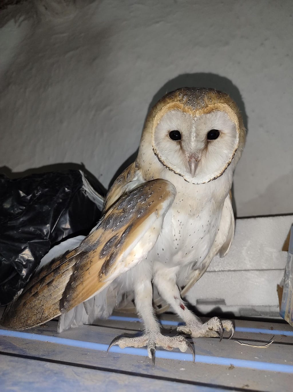 Konya'nın Kulu ilçesinde doğada ender görülen ve yaralı halde bulunan bayağı peçeli baykuş, tedaviye alındı.