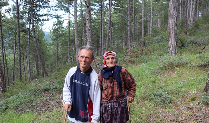 Bolu'nun Göynük ilçesinde yaşayan Ayşe Aydoğan, yanından bir an olsun ayırmadığı down sendromlu oğluyla yıllardır küçükbaş hayvan otlatıyor.