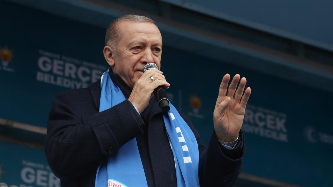 Cumhurbaşkanı Erdoğan, "Belediye başkanı olarak kimi görmek istersiniz sorusunu bile millete değil de yapay zekaya soranlara, sizin fikrinize, taleplerinize, hassasiyetlerinize saygı göstermeyenlere, size rağmen siyaset yapanlara bu seçimde esaslı bir ders vermeye hazır mıyız?" dedi.