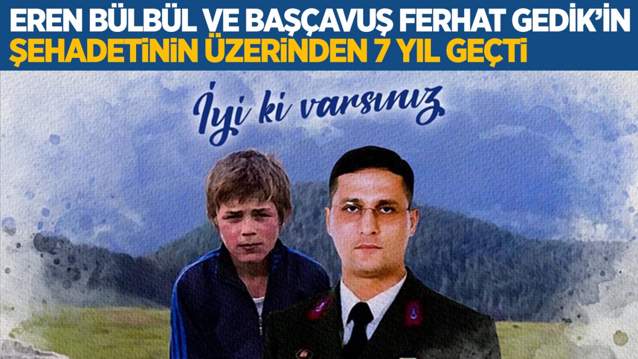 Trabzon'un Maçka ilçesi kırsalında, 11 Ağustos 2017'de bölücü terör örgütü mensuplarıyla sağlanan sıcak temas sırasında şehit olan 15 yaşındaki Eren Bülbül ve Jandarma Astsubay Kıdemli Başçavuş Ferhat Gedik, şehadetinin yedinci yılında unutulmadı.