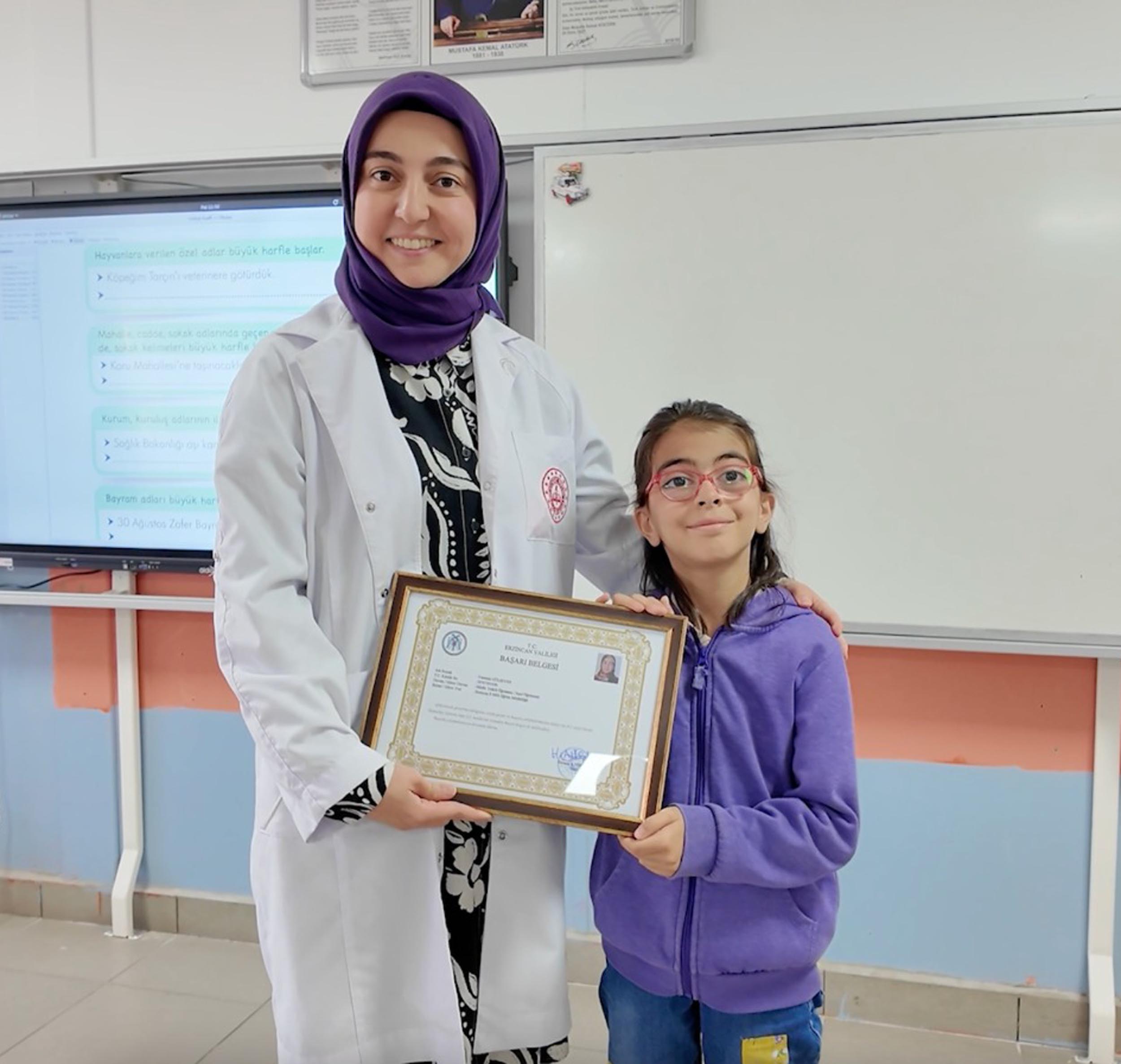 Vali Aydoğdu'nun teşekkür mesajıyla gönderdiği başarı belgesini Saliha Merve Çelik, derste öğretmenine verdi. Meslekte 5'inci yılı olduğunu belirten Yasemin Gülseven, "Erzincan Valimiz Hamza Aydoğdu'nun köyümüzü ziyaretinde öğrencilerle sohbet sırasında bir isteklerinin olup olmadığını sormuş. Öğrencimiz Saliha da parmak kaldırarak 'öğretmenimizin okuldan gitmesini istemiyorum' demiş. Bu durumu ben ertesi gün öğrenebildim. Çok duygulandım. Meslek hayatımda yaşadığım en duygusal anlardan bir tanesi oldu. Ertesi gün olduğunda da Sayın Valimiz başarı belgesini gönderdi. Teşekkür ederim" dedi.