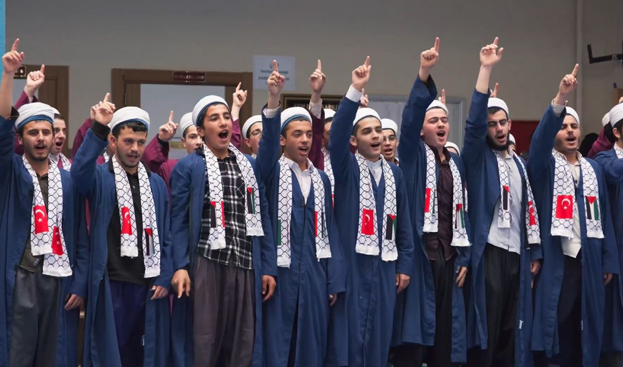 Erzurum’da inşaatı devam eden ve tamamlandığında Türkiye’nin en büyük İslami İlimler Akademisi olacak Erzurum İslami İlimler Akademisi’nde şu an itibariyle yaklaşık 500 öğrenci İslami İlimler ve Hafızlık alanında eğitim görüyor. Öğrenciler, İsrail’in Gazze’de uyguladığı katliama karşı tepki göstermek, Gazze direnişinin ve Filistin halkının yanında olduklarını duyurmak amacıyla bir video hazırladı. Video, sosyal medyada büyük ilgi gördü.