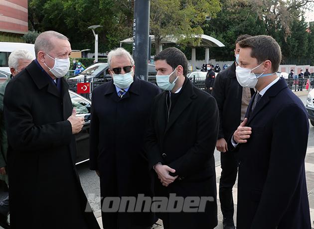 "Her nefis ölümü tadacaktır." ayetini hatırlatan Erdoğan, şöyle konuştu:"Nasıl ki şu anda musallada Mesut Bey'i ebediyete gönderiyorsak, bizler için de aynı akıbet şüphesiz ki gerçekleşecektir. Rabbim bizleri bu musallaya hazırlıklı olarak gelmeyi nasip etsin. Çok farklı bir dönemden geçiyoruz. İşte İzmir açıklarında meydana gelen olay, hepimizce malum. Bine yakın yaralımız var, 50'ye yakın ölenimiz, vefatımız var. Nerede ne zaman ne nasıl olacak belli değil. Bütün mesele hazırlıklı olmak. Hiç ölmeyecekmiş gibi dünyaya, her an ölecekmiş gibi ahirete hazırlıklı olmamız lazım. Rabbim yar yardımcımız olsun inşallah. Mesut Bey'in de mekanı cennet olsun. Bütün ailesine şahsım, ailem, milletim adına başsağlığı diliyorum. Birliğimiz, beraberliğimiz, dayanışmamız şüphesiz ki millet olarak hepimizin en büyük zenginliği olacaktır. Bu vesileyle sizlerin şahsında milletime başsağlığı diliyorum."Eski Başbakan Tansu Çiller ile İYİ Parti Genel Başkanı Meral Akşener de camiye gelerek Yılmaz'ın eşi ve oğluna başsağlığı diledi.