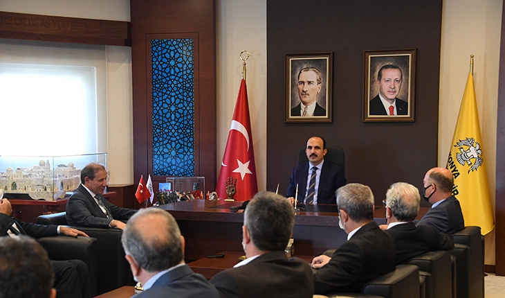Ahilik Haftası kutlamaları kapsamında Konya Esnaf ve Sanatkarlar Odaları Birliği Başkanı Muharrem Karabacak ve birliğe bağlı oda başkanları Konya Büyükşehir Belediye Başkanı Uğur İbrahim Altay’ı ziyaret etti. Pandemi sürecinde esnafın mağduriyetinin giderilmesiyle ilgili çözümler ürettiklerini belirten Başkan Altay, “Esnaf olarak yapmamız gereken önce kendi aşımızı sonra çalışanların aşılarını tamamlamak. Çünkü tekrar kapanmaya hiçbirimizin tahammülü kalmadı. İnşallah aşıyla ilgili farkındalık a