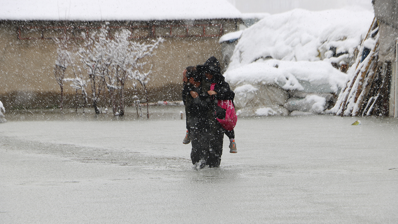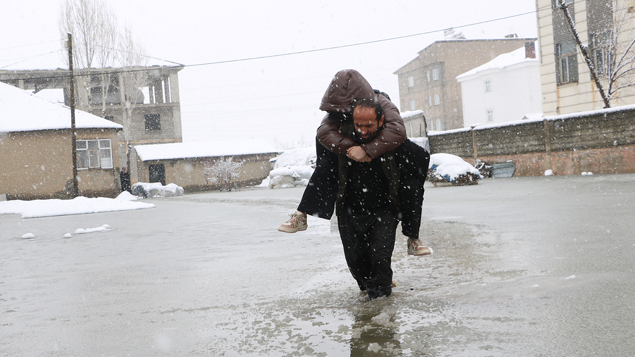 Hakkari'nin Yüksekova ilçesinde etkili olan yağışlar ve karların erimesi sonucu Yeni Mahalle’de bazı noktalar suyla doldu. Mahallede yaşayan Cengiz Dilce, evinin önündeki su birikintisi nedeniyle 2 çocuğunu yaklaşık 1 aydır her gün sırtında taşımak zorunda kaldığını söyledi.