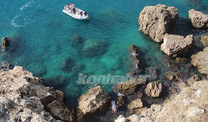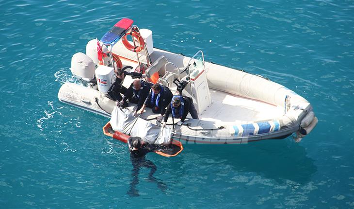 Kayalık alana güçlükle ulaşan ekipler, şahsın hayatını kaybettiğini belirledi. Ceset torbasının ardından kaşık sedyeye alınan şahsın cenazesi, deniz polisi dalgıç ekipleri tarafından suya indirildi. Dalga nedeniyle kayalık alanda zorluk yaşayan ekipler, sedyeyi sudan bota ulaştırmayı başardı. Bota alınan ceset, Kaleiçi Yat Limanı’na çıkarıldı.