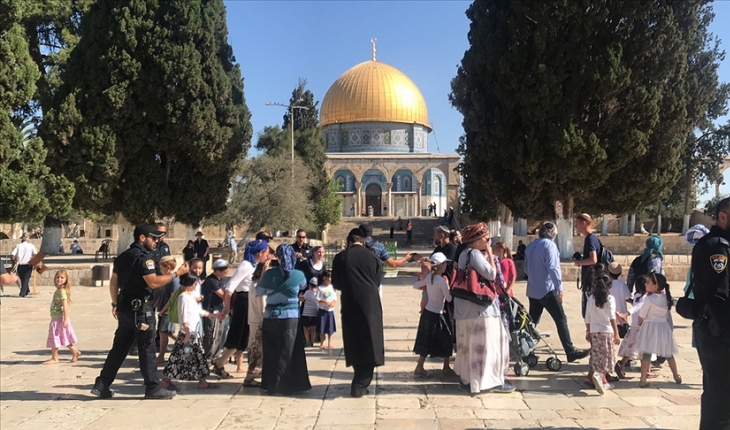 Siyonist İsrail polisinin eşlik ettiği onlarca fanatik Yahudi, işgal altındaki Doğu Kudüs'ün Eski Şehir bölgesinde bulunan Mescid-i Aksa'nın avlusuna girdi.