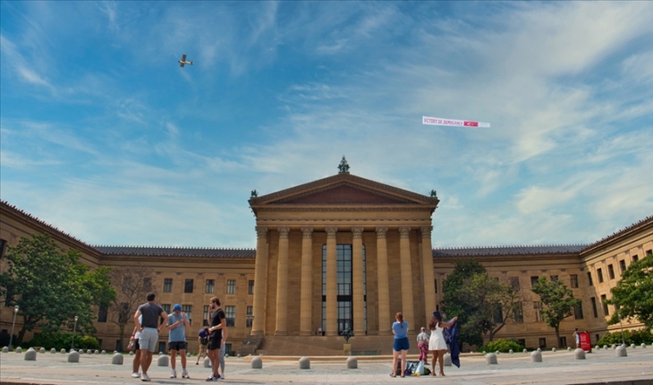 15 Temmuz darbe girişiminin yıl dönümünde FETÖ'nün elebaşı Fetullah Gülen'in yaşadığı ABD'nin Pensilvanya eyaletine bağlı Philadelphia şehri üzerinde, "Victory of Democracy" (Demokrasi Zaferi) afişi taşıyan uçak uçuruldu.