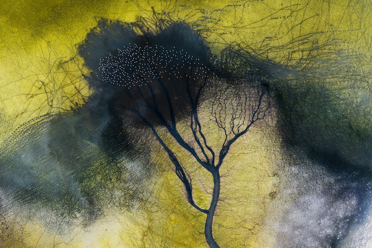 Sürüler halinde hareket eden kuşlar, gökyüzüyle suyun birleştiği noktada etkileyici bir siluet sundu.