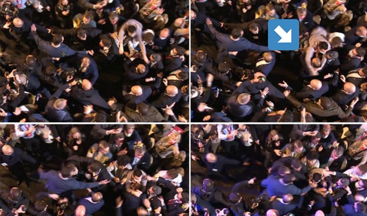Irkçılık karşıtları miting salonunda, Zemmour'u protesto etti. O sırada içlerinden biri kalabalığı yararak, destekçileri ve korumalarıyla yürüyen ve halkı selamlamaya çalışan Zemmour'a ulaştı. Irkçı adayı ensesinden tutarak çekti ve tartaklamaya başladı.