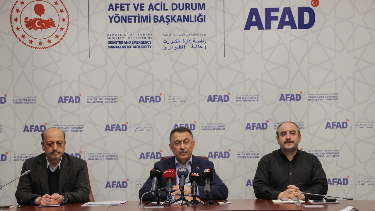 Oktay, Çalışma ve Sosyal Güvenlik Bakanı Vedat Bilgin, Sanayi ve Teknoloji Bakanı Mustafa Varank ile AFAD Koordinasyon Merkezi'nde deprem bölgelerindeki son duruma ilişkin açıklamalarda bulundu.