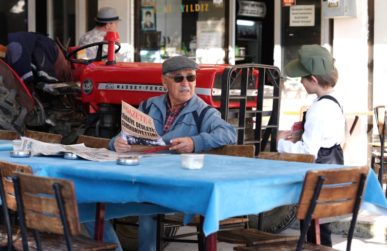 Dönemin kıyafetlerini giyerek "Yazıyor, Cumhuriyet'in ilanını yazıyor" sözleriyle sokakları dolaşan çocuk, "Türkiye Devleti Cumhuriyettir" manşetini taşıyan gazeteyi vatandaşlara dağıttı.
