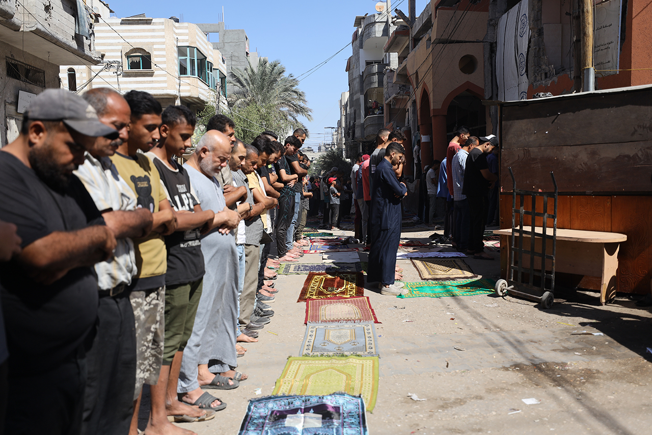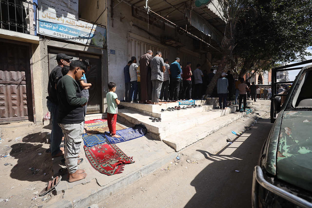 Gazze Şeridi'nde ateşkesin devreye girmesinin ardından ilk cuma namazı kılındı. Yüzlerce Filistinli, İsrail saldırılarında bir kısmı yıkılan Nuseyrat Kampı'ndaki Faruk Camii'nde ve çevresinde saf tuttu.