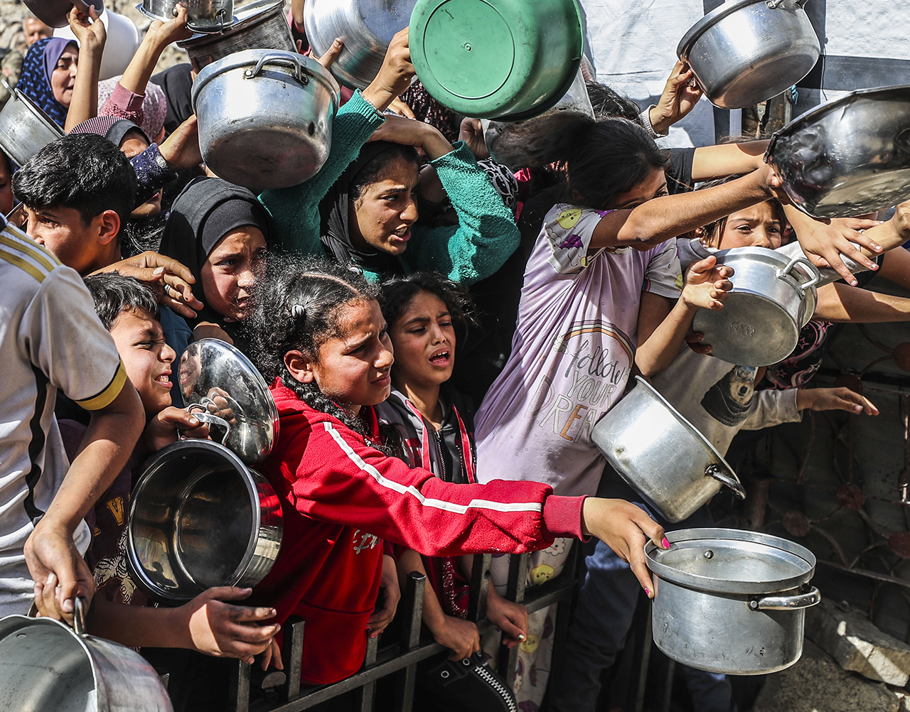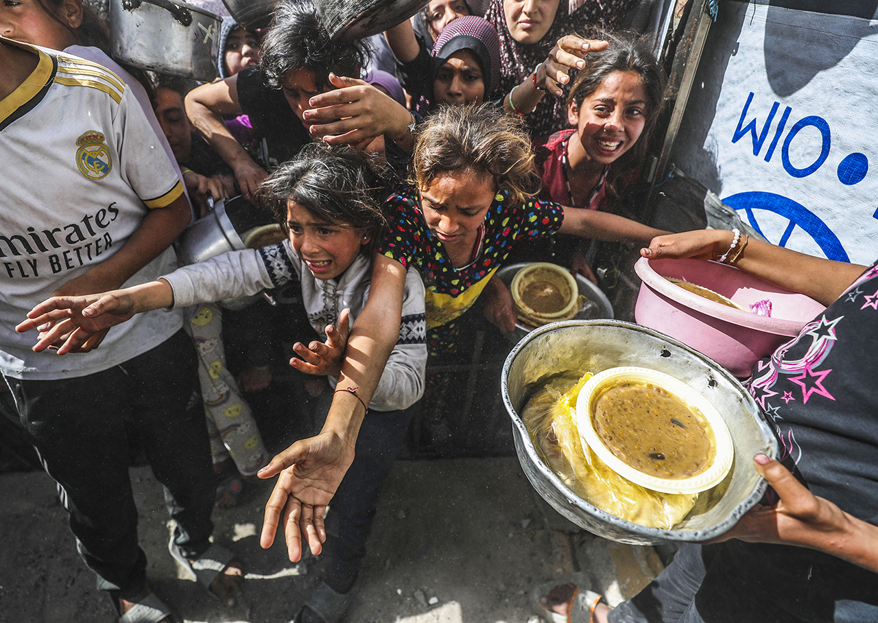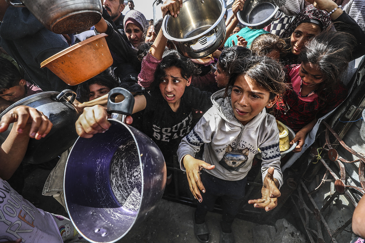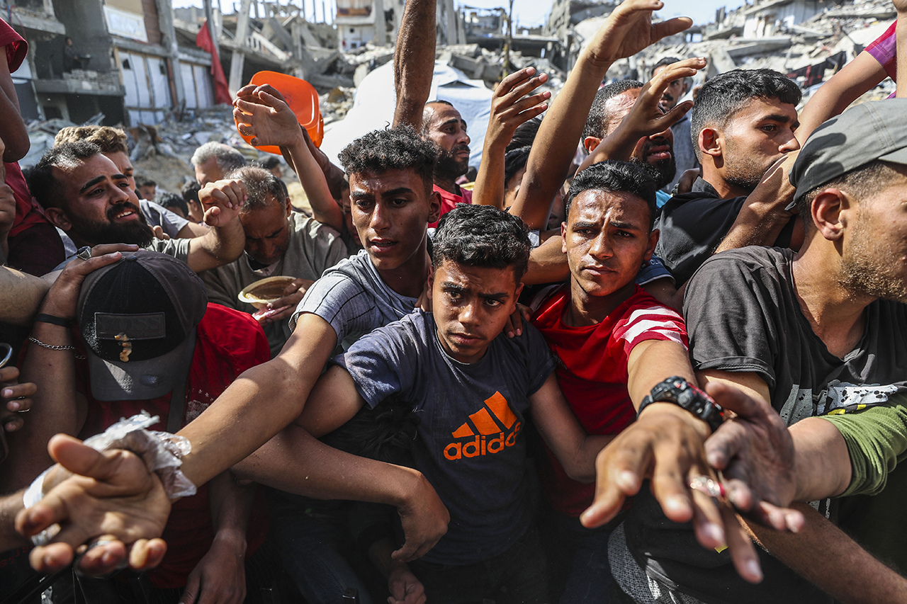 Bazı hayır kurumları, Gazze'nin kuzeyindeki Cibaliya Mülteci Kampı'ndaki Filistinlilere yemek dağıttı. Yiyecek bulmakta zorluk çeken Filistinliler, dağıtılan yemeklerden alabilmek için yoğunluk oluşturdu.