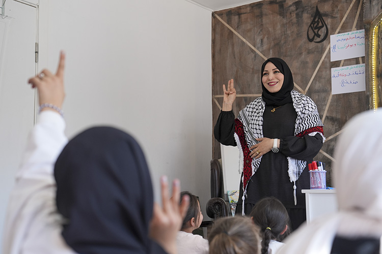 İsrail'in Gazze'ye saldırılarında ağır yaralanan ve Türkiye'de tedavi edilen kuzenine refakat eden resim öğretmeni Hiba Zaqout, gönüllü olarak çocuklara resim, Arapça ve Kur'an dersleri veriyor.
