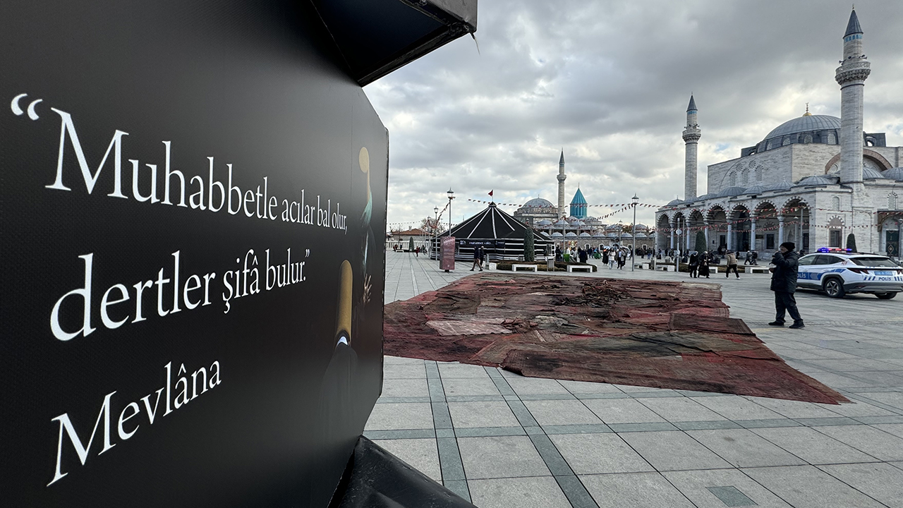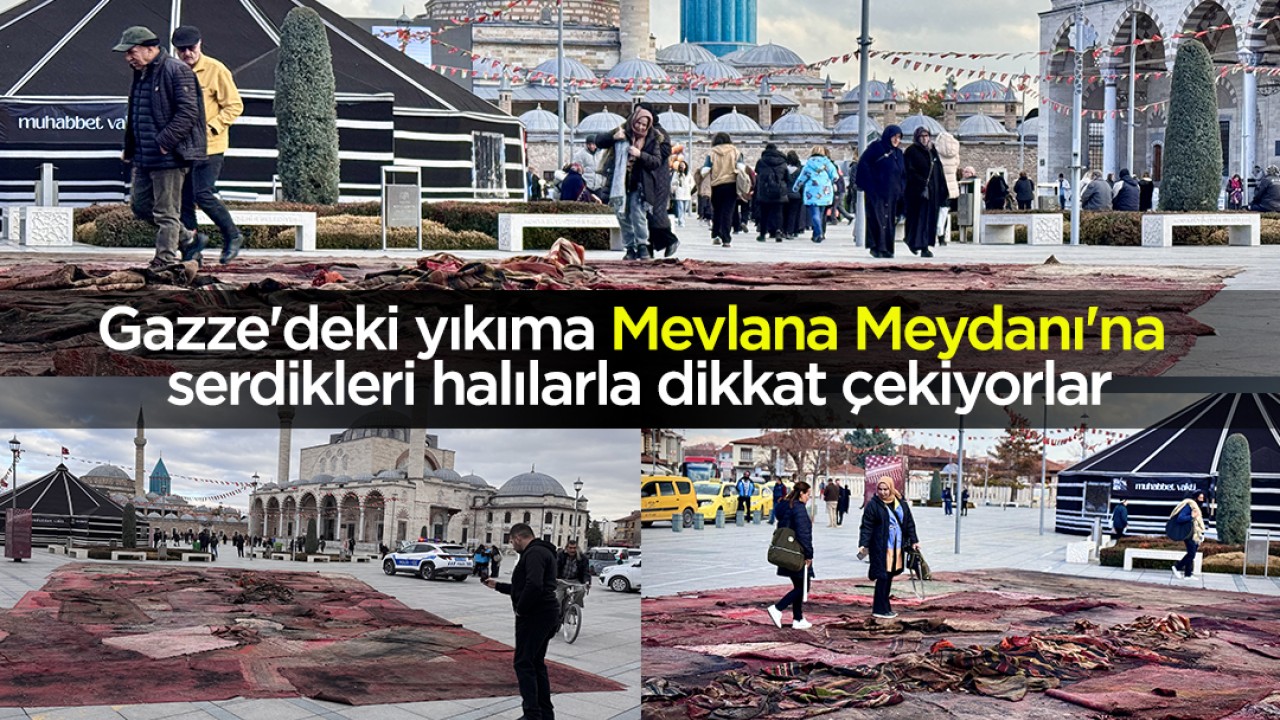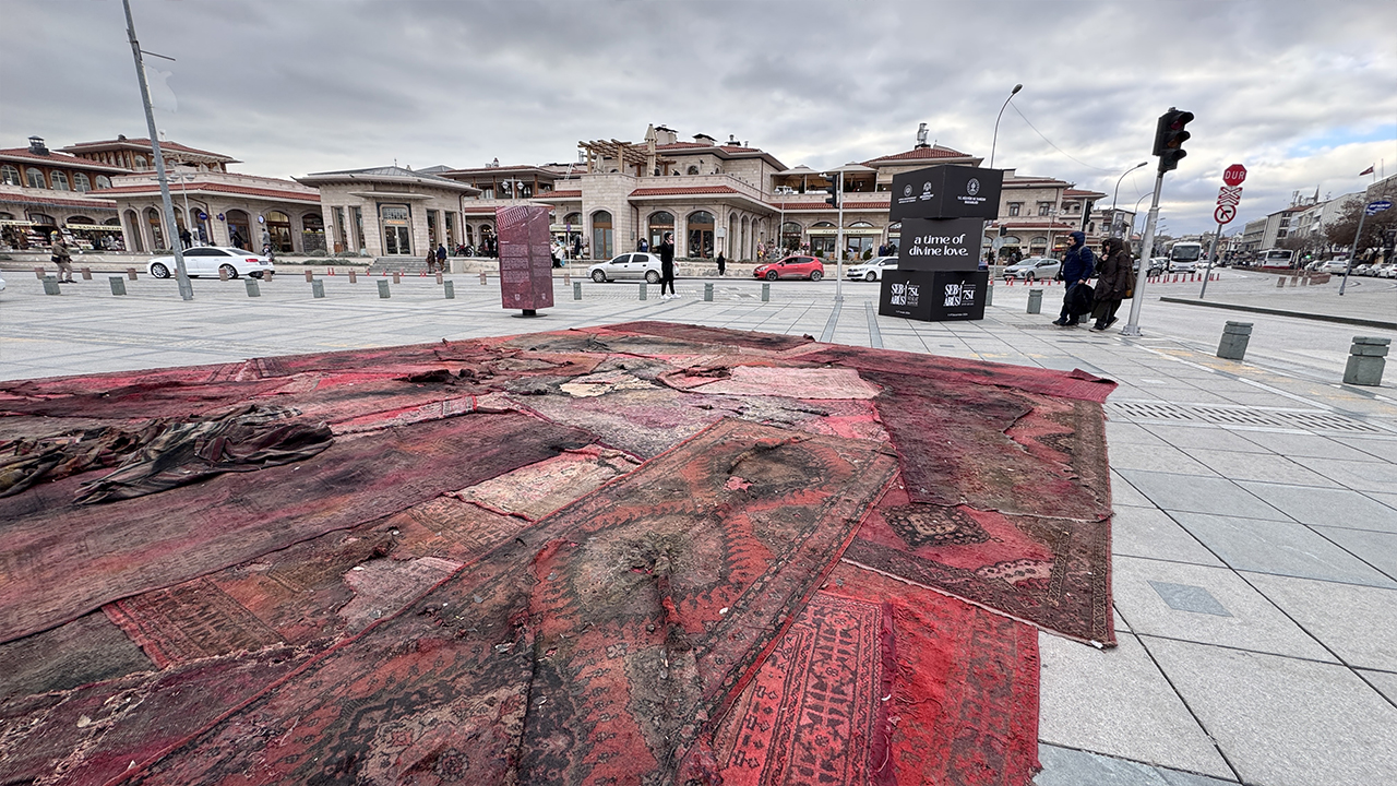 Hazreti Mevlana'nın vuslatının 751. yıl dönümü etkinlikleri kapsamında Kültür Medeniyet Vakfının "Dokunaklı" adlı halı enstalasyonu (yerleştirme sanatı), yerli ve yabancı turistlerin dikkatini Gazze'deki yıkıma çekiyor.