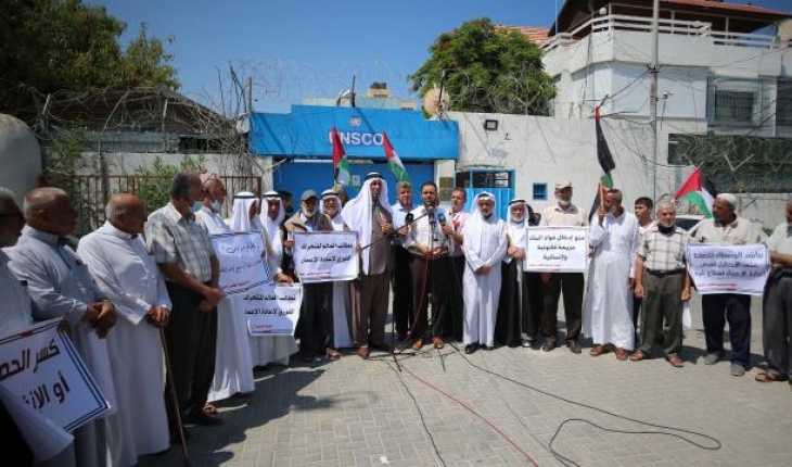 Gazze kentindeki Birleşmiş Milletler Ortadoğu Barış Süreci Özel Koordinatörlüğü (UNSCO) binası önünde yapılan eylemde, "Dünyadan yeniden imar için harekete geçmesini istiyoruz", "Neden iki kez haksızlığa uğruyoruz. Hem evlerimiz bombalanıyor, hem de yeniden imara izin verilmiyor" yazılı dövizler taşındı.