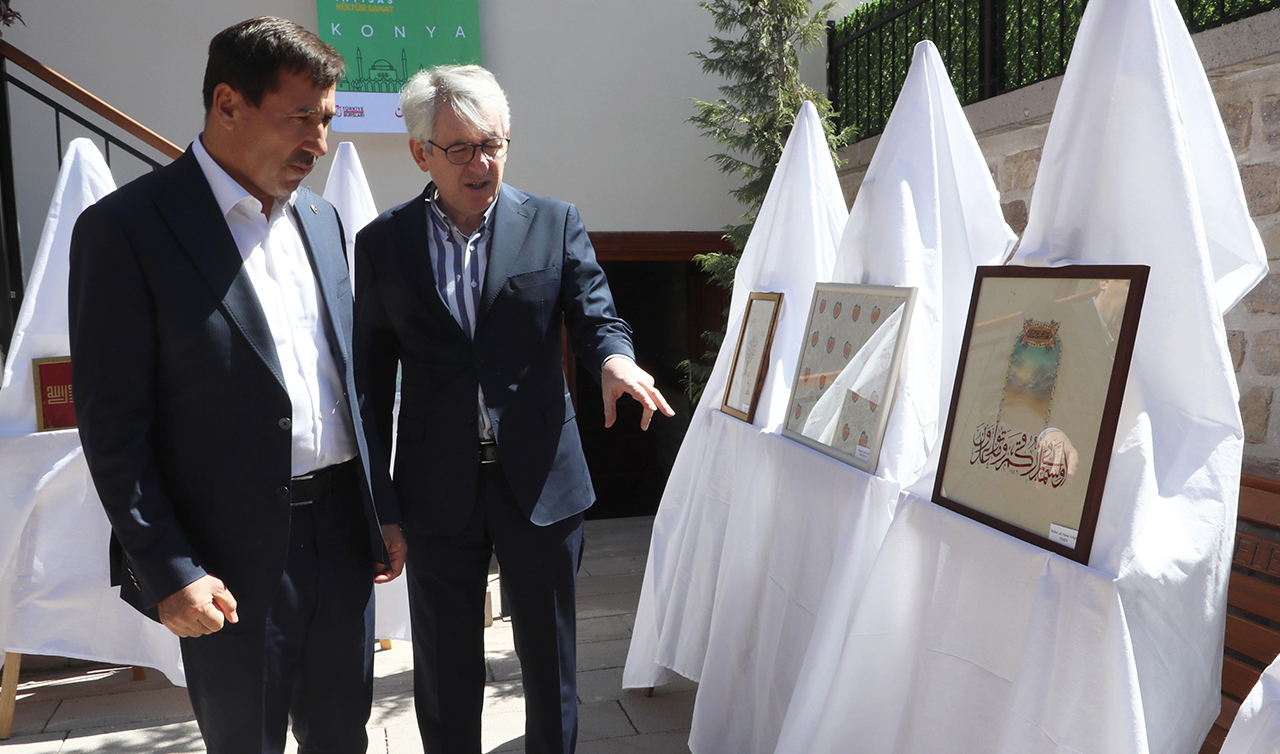 Kültür ve Turizm Bakan Yardımcısı Nadir Alpaslan, Konya Valisi İbrahim Akın ve Karatay Belediye Başkanı Hasan Kılca, 25 farklı ülkeden Türkiye burslusu öğrencilerin eserlerinin yer aldığı Hüsn-i Hat, Tezhip, Minyatür, Kalem İşi ve Ebru sergisinin açılışına katıldı.