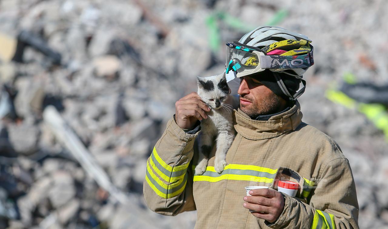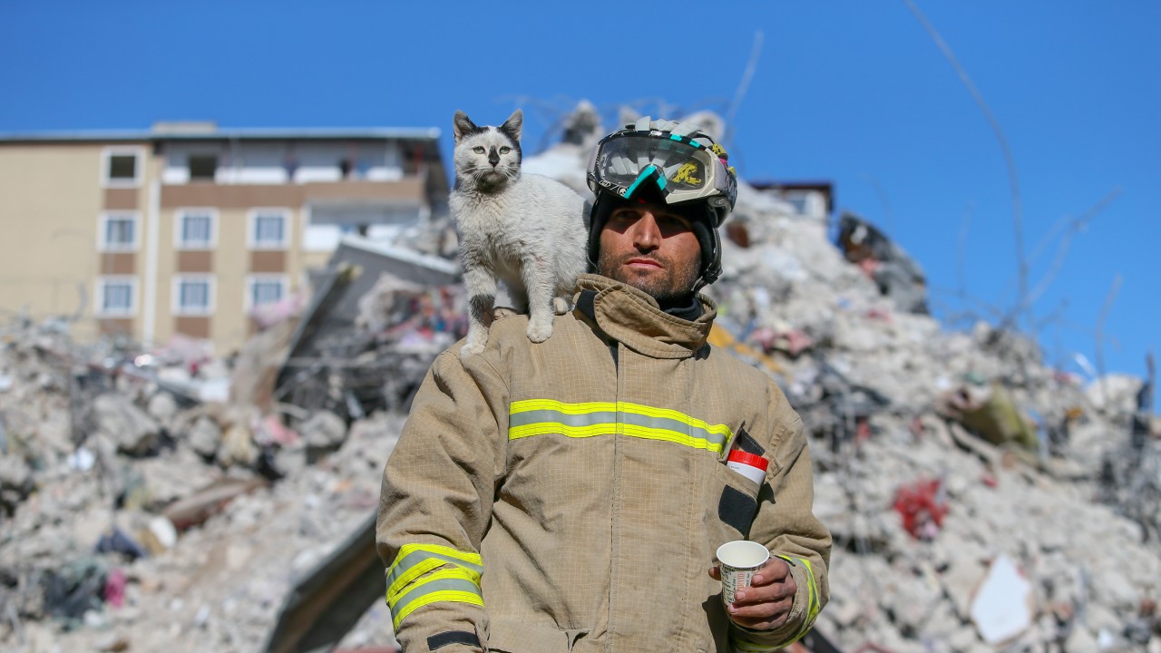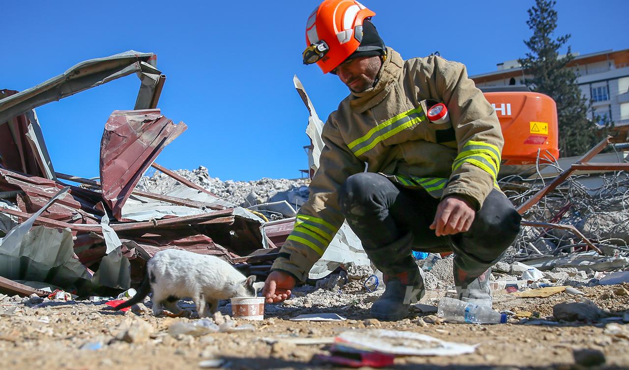 Kedinin bakımını üstlenen itfaiye görevlisi Ali Çakas, 90 kişilik ekiple depremin ilk gününden bu yana durmaksızın arama kurtarma yaptıklarını, bir kişiyi daha canlı çıkarabilmek için çalıştıklarını anlattı.