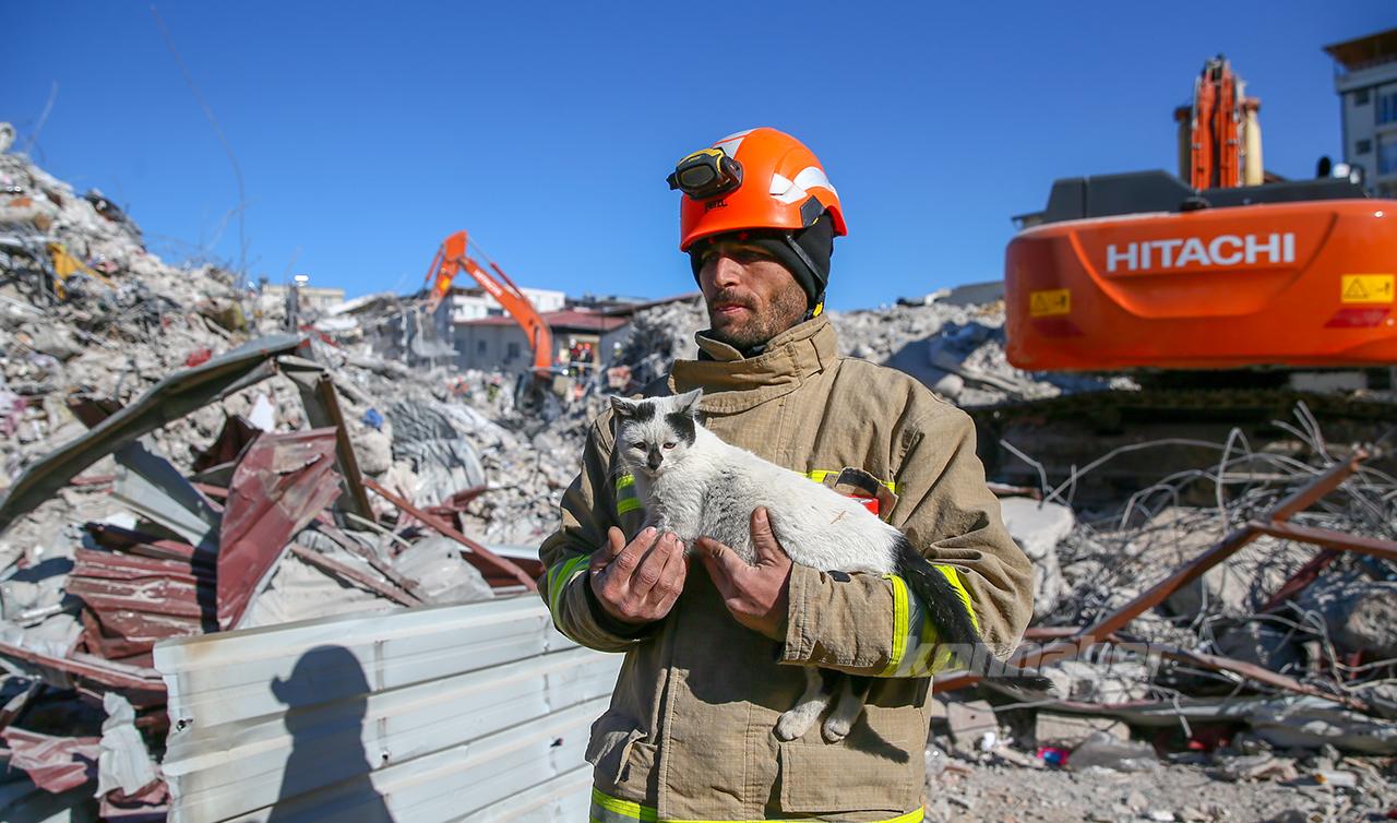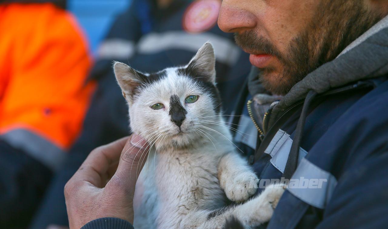 Depremlerle yıkılan Atatürk Mahallesi'ndeki Akan Apartmanı'nın enkazından 129. saatte 5 kişiyi kurtaran Mardin İtfaiyesi ekibi, aynı enkazdaki 2 kediyi de sağ çıkardı.