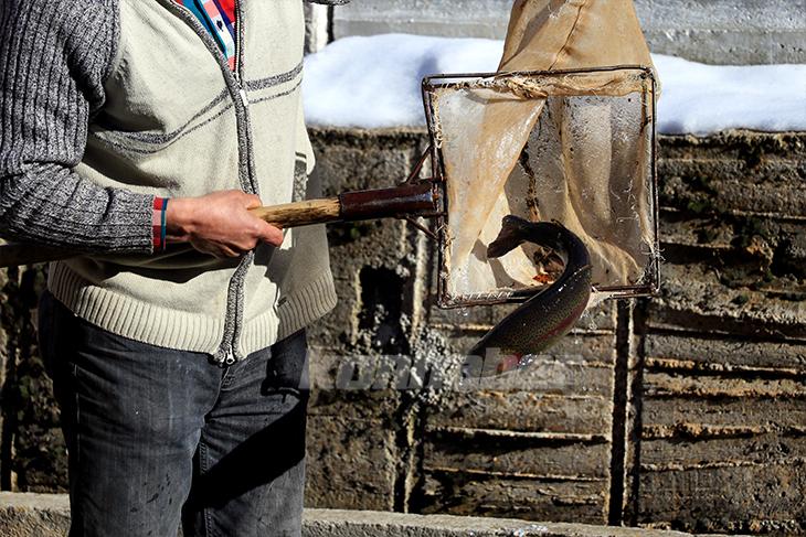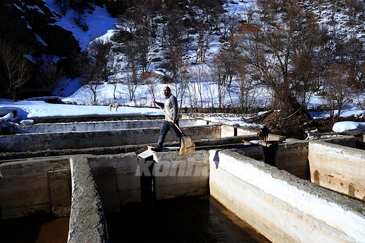 Balıkçı İsa Dikmen, tüm zorluklara rağmen yılın tamamını dağda havuzların bakımı ve balıkların beslenmesiyle geçirdiklerini söyledi.