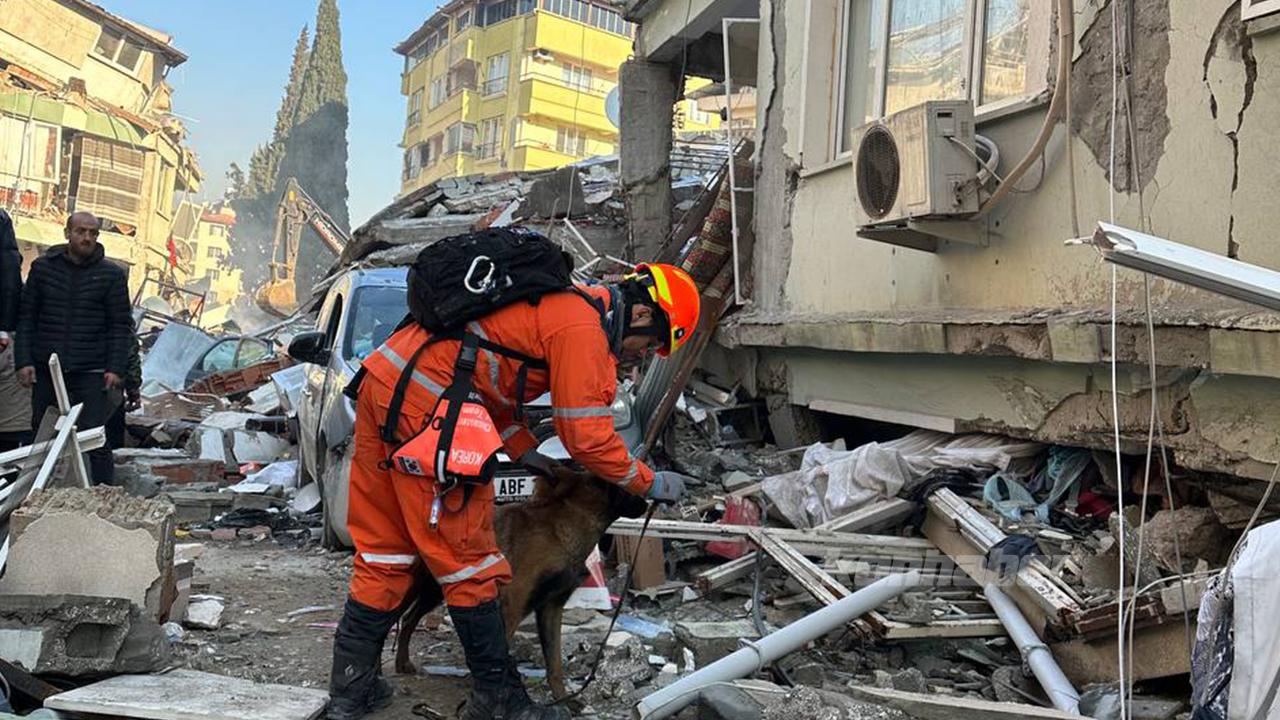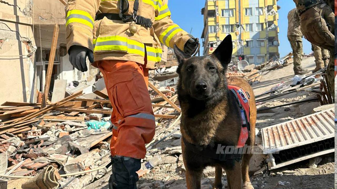 "Asrın felaketi" olarak nitelenen Kahramanmaraş merkezli depremlerin ardından, Güney Kore'den kurtarma çalışmalarına destek için gelen ekipte yer alan özel eğitimli 3 köpek, yaralı ayaklarındaki bandajlarla çalışmalara devam ediyor.