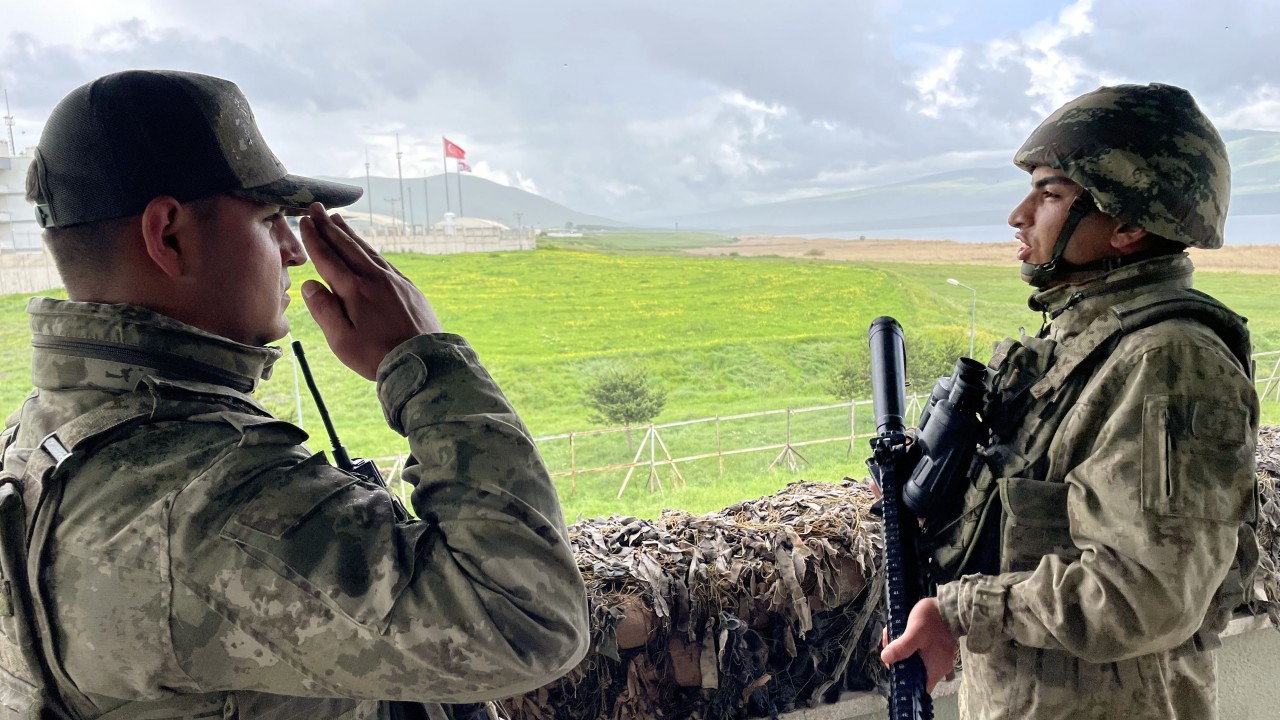Ardahan'ın Çıldır İlçesinde, Gürcistan sınırının sıfır noktasında yer alan Aktaş Hudut Karakolu'nda görevli askerler, Kurban Bayramı'nı komutanlarıyla karşıladı.