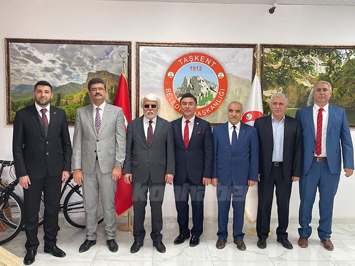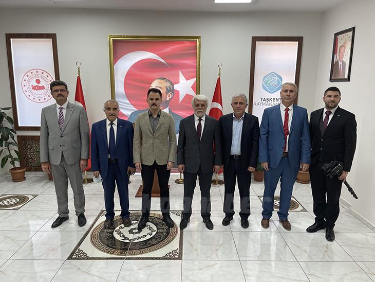 Heyetin ilk durağı Taşkent Kaymakamlığı oldu. Kaymakam Harun Arslanarguna hayırlı olsun ziyaretinde bulunan yöneticiler, göreve başlayalı 3 ayı bulan Kaymakam Arslanargundan ilçe izlenimleri hakkında bilgi aldı.