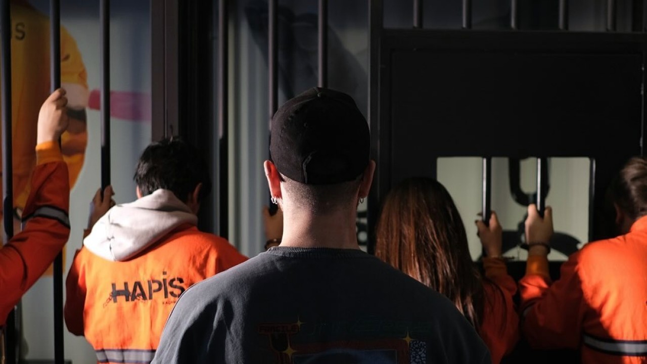 Bursa’da 'hapishane' konseptli kafenin garsonları, gardiyan kıyafeti ile parmaklıklar ardındaki hücrelerde bekleyen müşterilerine servis yapıyor. İşletme sahibi Alp Bedirhan Kıbıcı (27), “Bazıları birbirlerine, ‘Allah kurtarsın’ diyerek espri yapıyor. Sosyal medyada paylaştıkları fotoğraflara, ‘Bedel ödendi’ gibi yorumlar yapılıyor. Hücrelere girmek için insanlar sıra bekliyor” dedi.