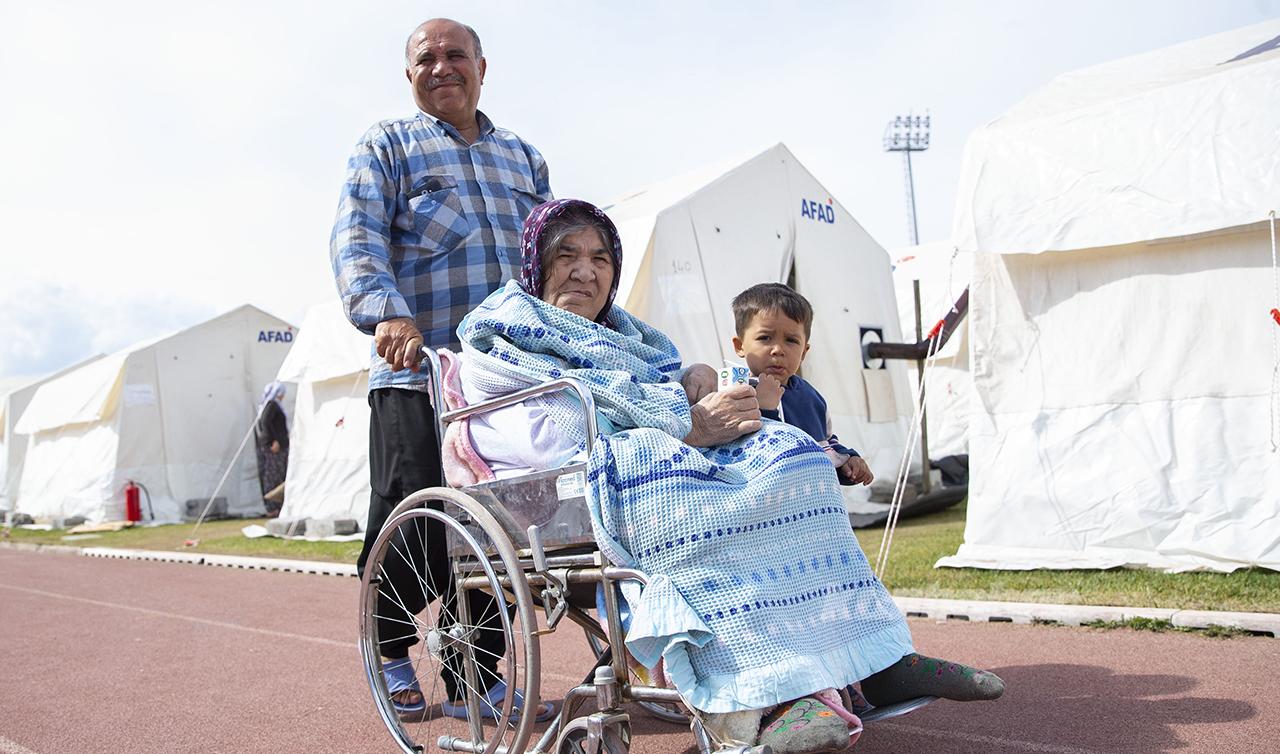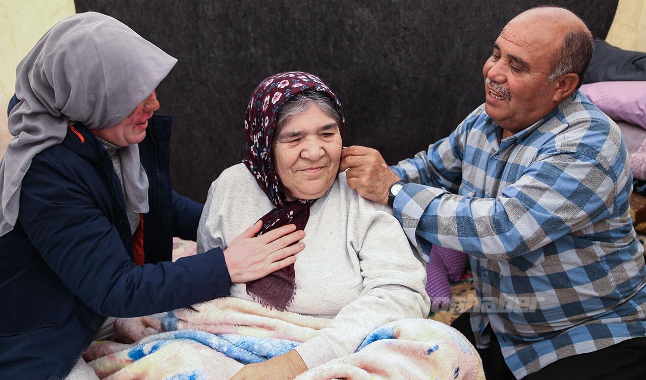 Kızının da yardımıyla battaniyeye sardıkları eşini dışarı çıkaran Bozdere, ailesiyle Avşar Çadır Kent'e yerleştirildi.
