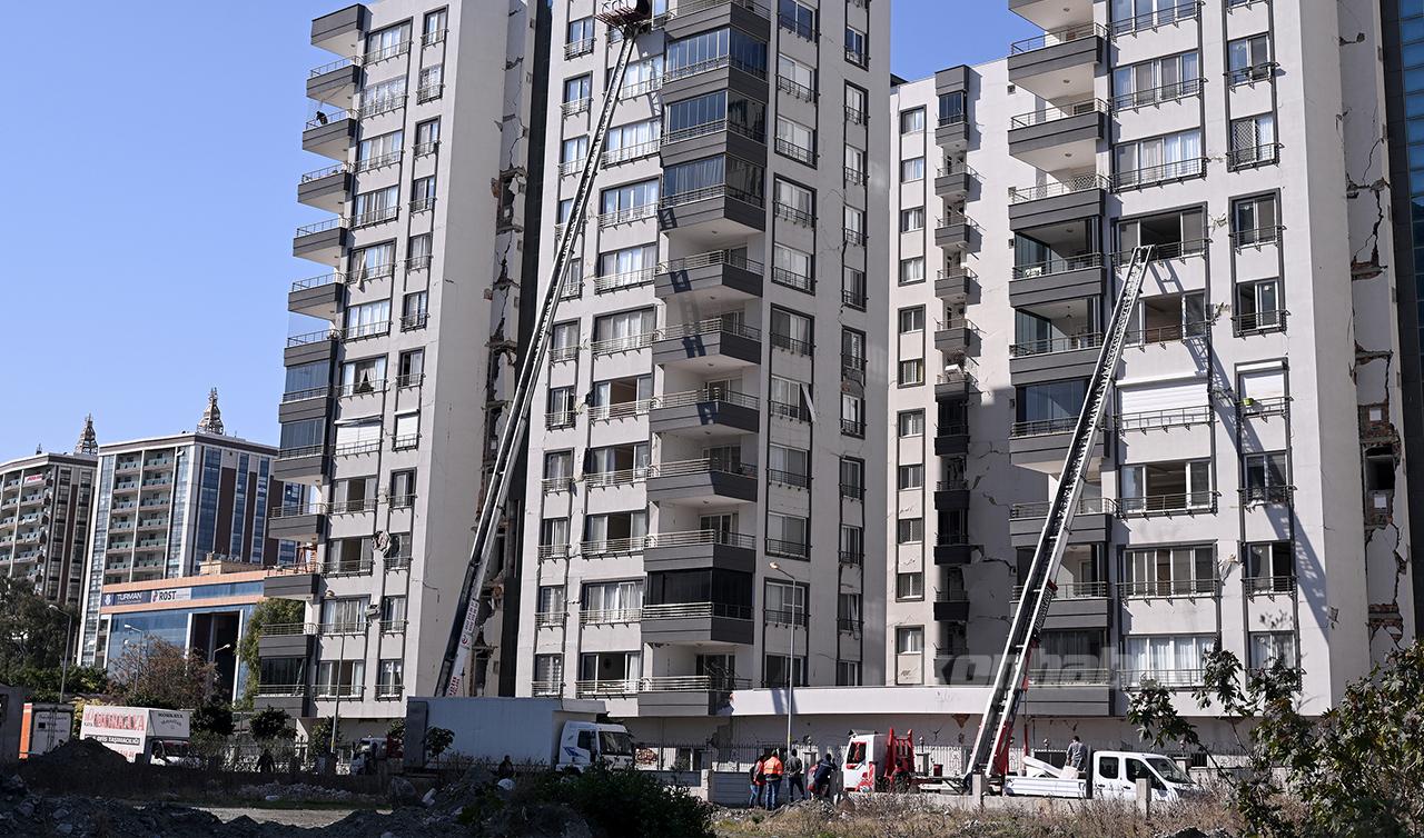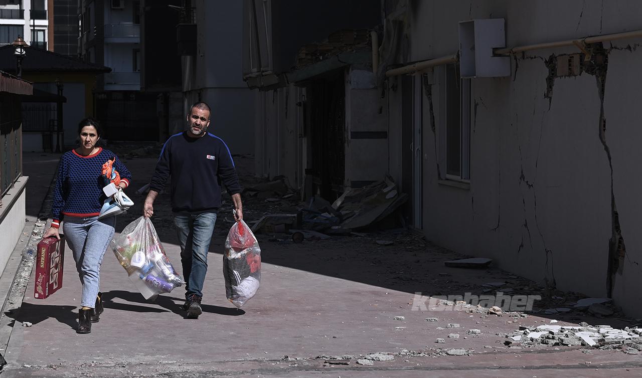 İskenderun ilçesi genelinde az, orta, ağır hasarlı ve acil yıkımına karar verilen binalardan tahliye işlemlerine ilişkin izinleri çıkan vatandaşlar, anılarını geride bıraktıkları dairelerinden eşyalarını almaya başladı.