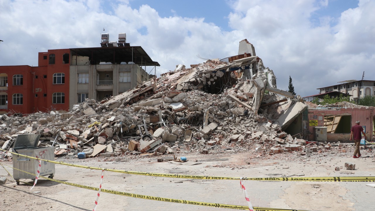 Kahramanmaraş merkezli 6 Şubat'taki depremlerin ardından boşaltılan Cumhuriyet Mahallesi Atatürk Caddesi'ndeki bina kendiliğinden çöktü.