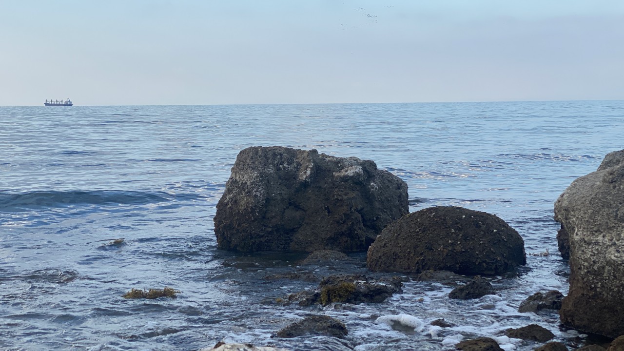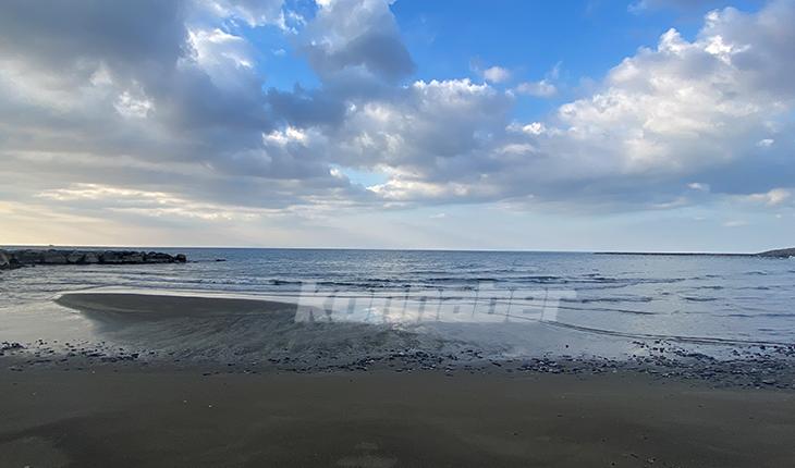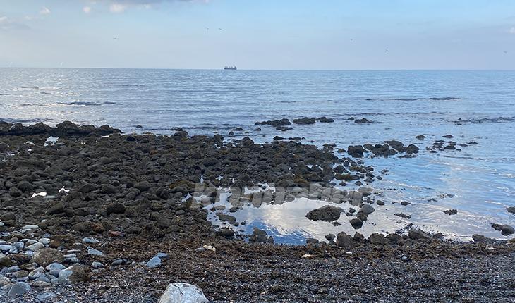 Çekilmenin ardından Arsuz sahilinde taşlar ve kayalıklar meydana çıktı.