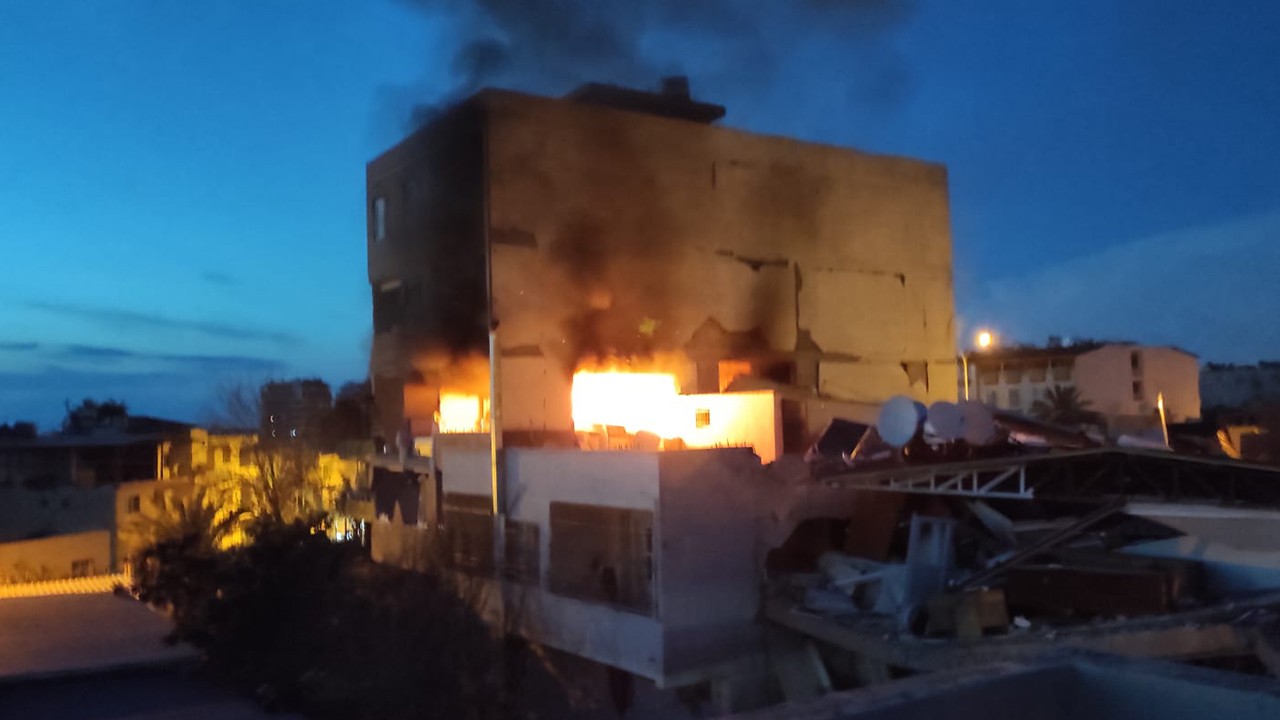 Konarlı Mahallesi'nde depremde ağır hasar gören apartmanın ikinci katında yangın çıktığı ihbarı üzerine olay yerine itfaiye ekipleri sevk edildi.