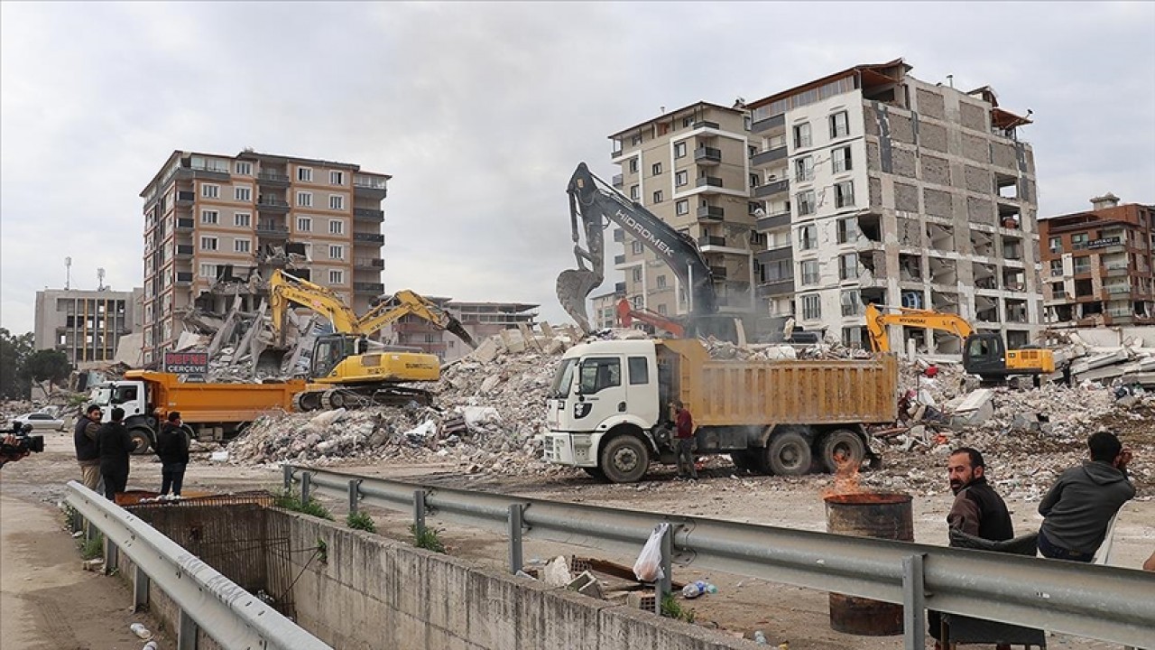 Kahramanmaraş merkezli 6 Şubat'ta meydana gelen depremlerden etkilenen Hatay'da enkaz kaldırma ve ağır hasarlı binaların yıkım çalışmaları 14 mahallede sürüyor.