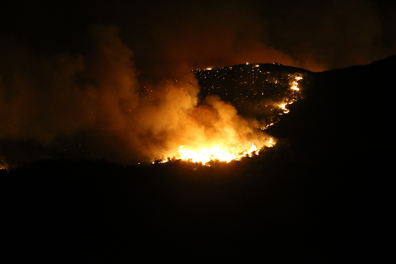 Karaali Mahallesi'ndeki ormanlık alanda başlayan ve rüzgarın etkisiyle Oğlakören ile Üçgedik mahallelerine de sıçrayan yangına ekiplerin karadan müdahalesi gece boyunca devam etti. Sabahın ilk ışıklarıyla yangın söndürme helikopteri de çalışmalara destek vermeye başladı.