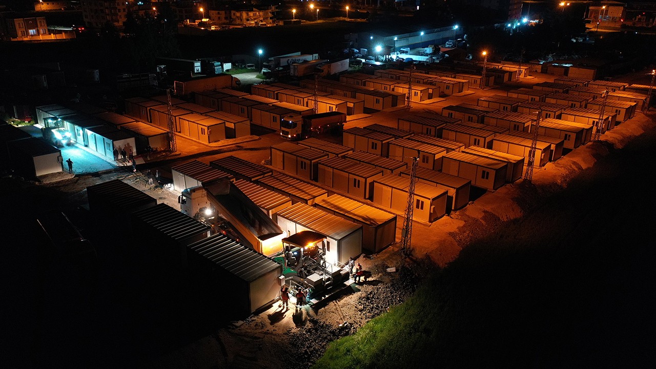 Konya Büyükşehir Belediyesi, Hatay’da evlerini kaybeden depremzedelerin barınma sorununa katkıda bulunmak için yapımını sürdürdüğü konteyner kentleri tamamlamak için yoğun mesai yapıyor.