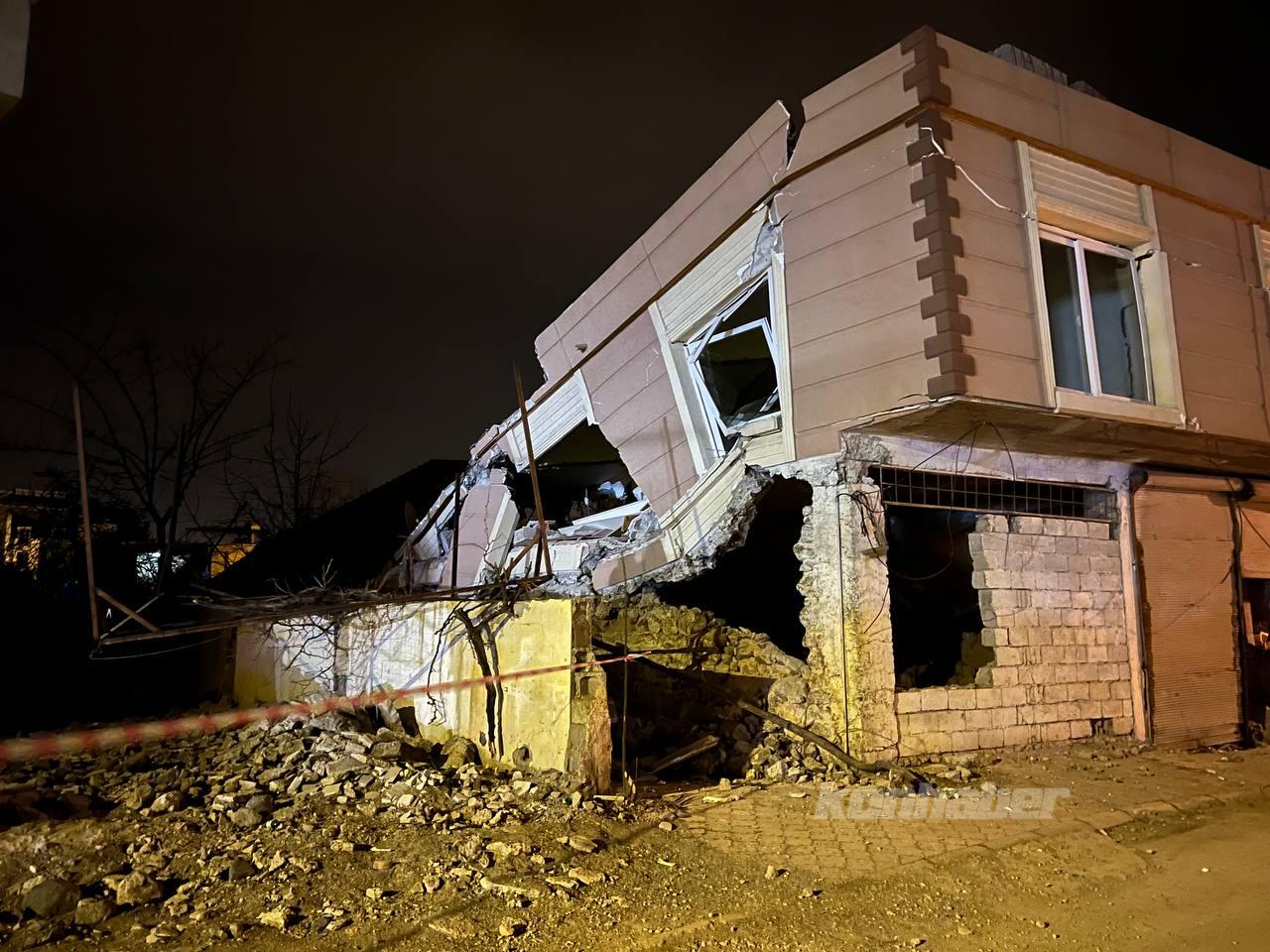 Sarsıntı nedeniyle Kahramanmaraş merkezli 6 Şubat'taki depremlerde hasar aldığı ve yanındaki 3 katlı apartman yıkıldığı için tedbir amaçlı boşaltılan Cumhuriyet Mahallesi'ndeki 2 katlı binanın bir bölümü yıkıldı.