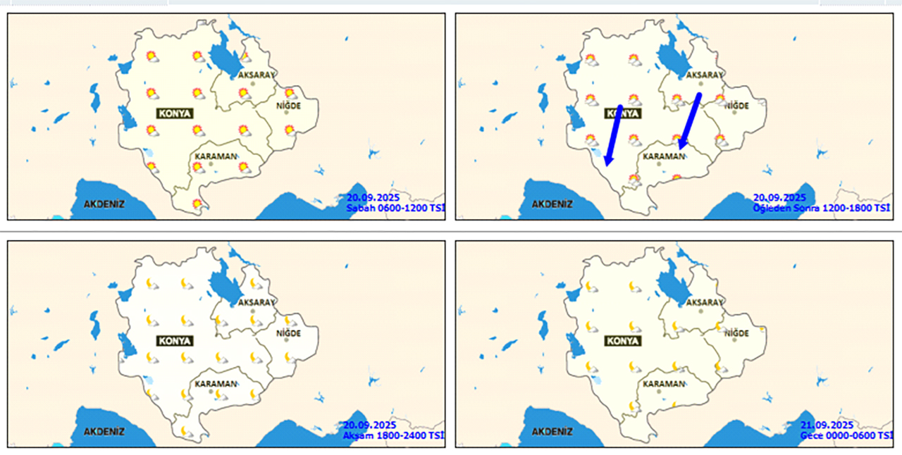 | Karatay | Parçalı ve az bulutlu | 22 | |