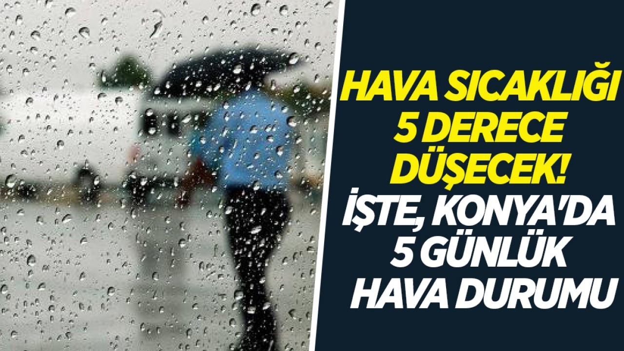 Meteorolojinin son hava tahmin raporuna göre Konya’da hava bugün aralıklı yağmur ve sağanak yağışlı geçecek. Hava sıcaklığının ise 5 ila 7 derece düşmesi bekleniyor. İşte, Konya'da 5 günlük hava durumu...