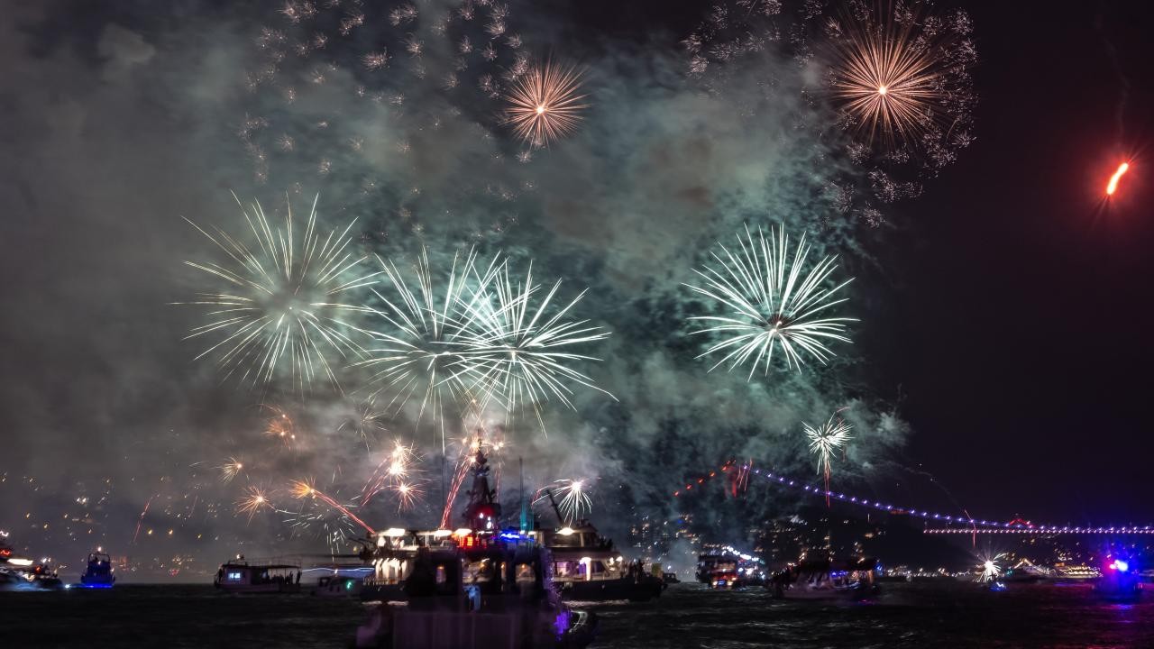 Amerika Birleşik Devletleri'nde (ABD) geçen yıl 4 Temmuz Bağımsızlık Günü kutlamaları kapsamında Manhattan'daki East River üzerinde yaklaşık 60 bin havai fişek patlatıldı.